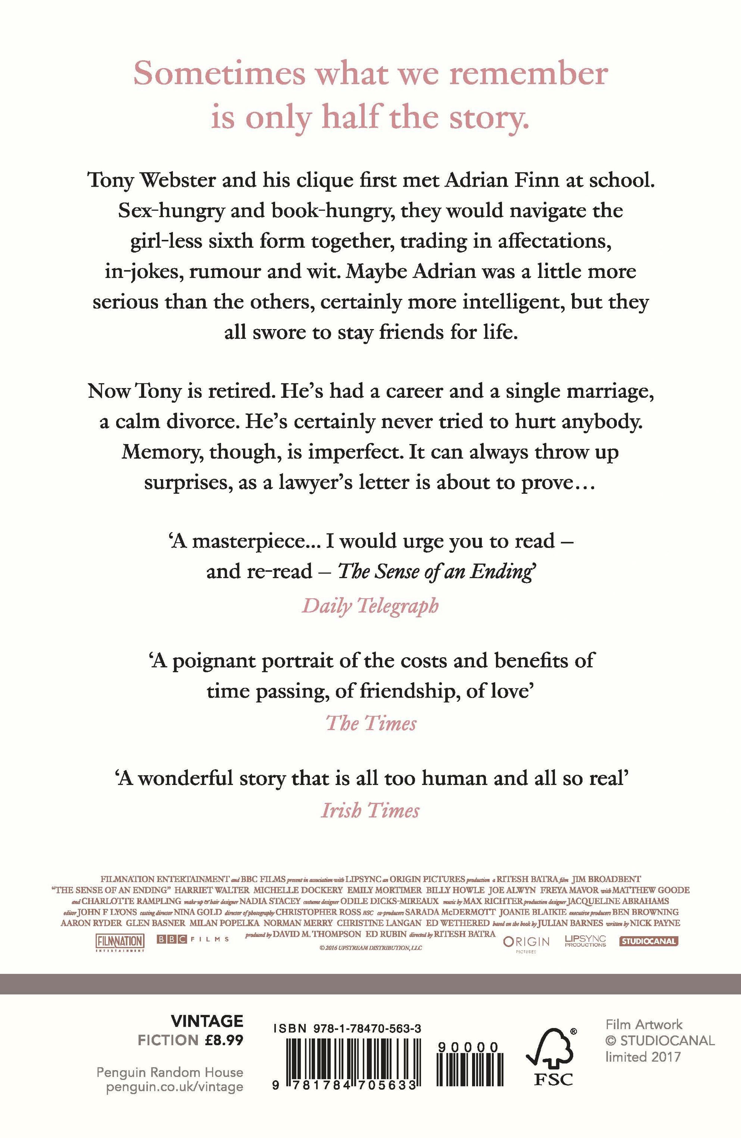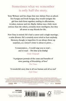Tony Webster and his clique first met Adrian Finn at school. Sex-hungry and book-hungry, they would navigate the girl-less sixth form together, trading in affectations, in-jokes, rumour and wit. Maybe Adrian was a little more serious than the others, certainly more intelligent, but they all swore to stay friends for life.