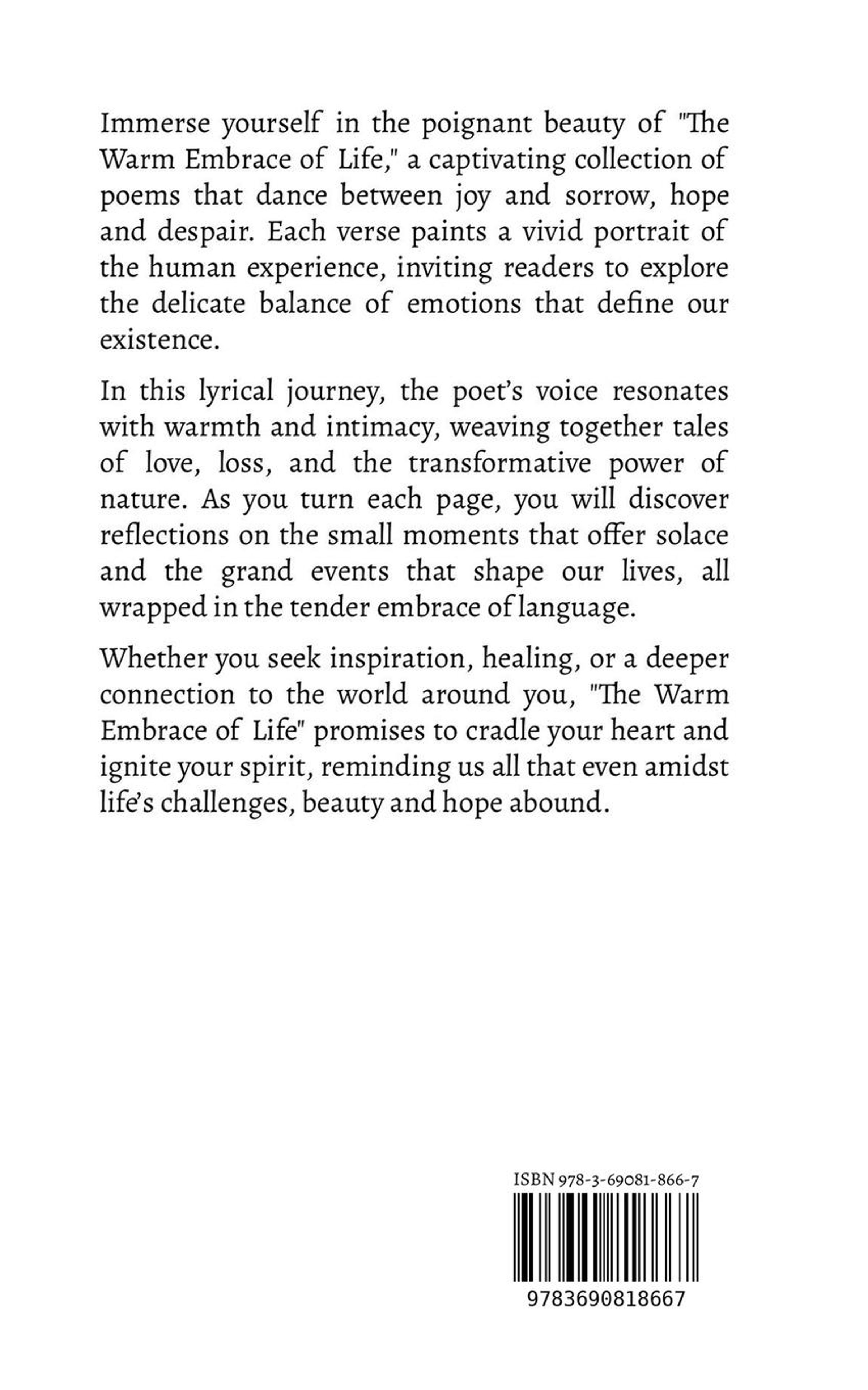 Immerse yourself in the poignant beauty of "The Warm Embrace of Life," a captivating collection of poems that dance between joy and sorrow, hope and despair. Each verse paints a vivid portrait of the human experience, inviting readers to explore the delicate balance of emotions that define our existence. In this lyrical journey, the poet's voice resonates with warmth and intimacy, weaving together tales of love, loss, and the transformative power of nature. As you turn each page, you will discover reflections on the small moments that offer solace and the grand events that shape our lives, all wrapped in the tender embrace of language. Whether you seek inspiration, healing, or a deeper connection to the world around you, "The Warm Embrace of Life" promises to cradle your heart and ignite your spirit, reminding us all that even amidst life's challenges, beauty and hope abound.