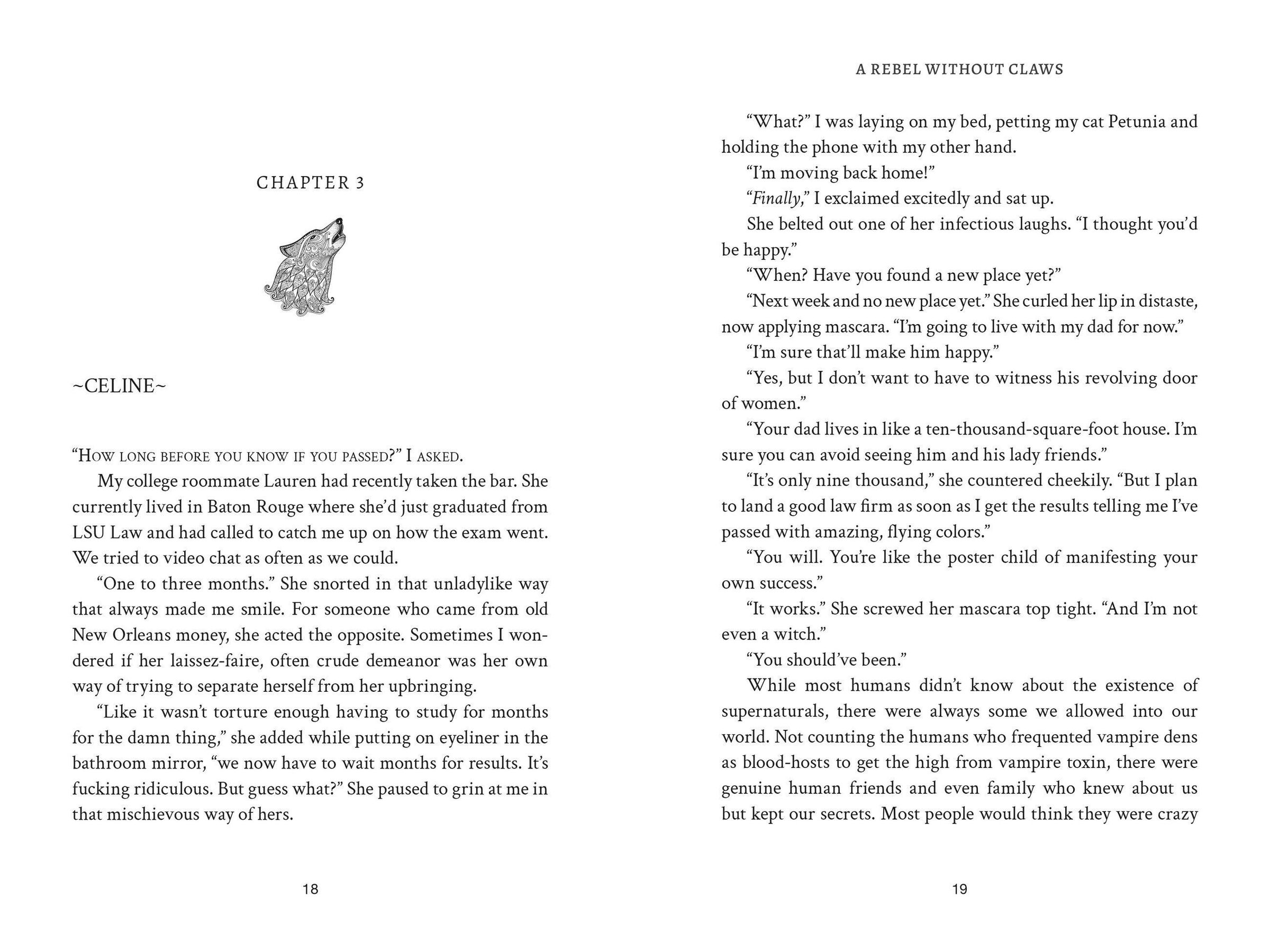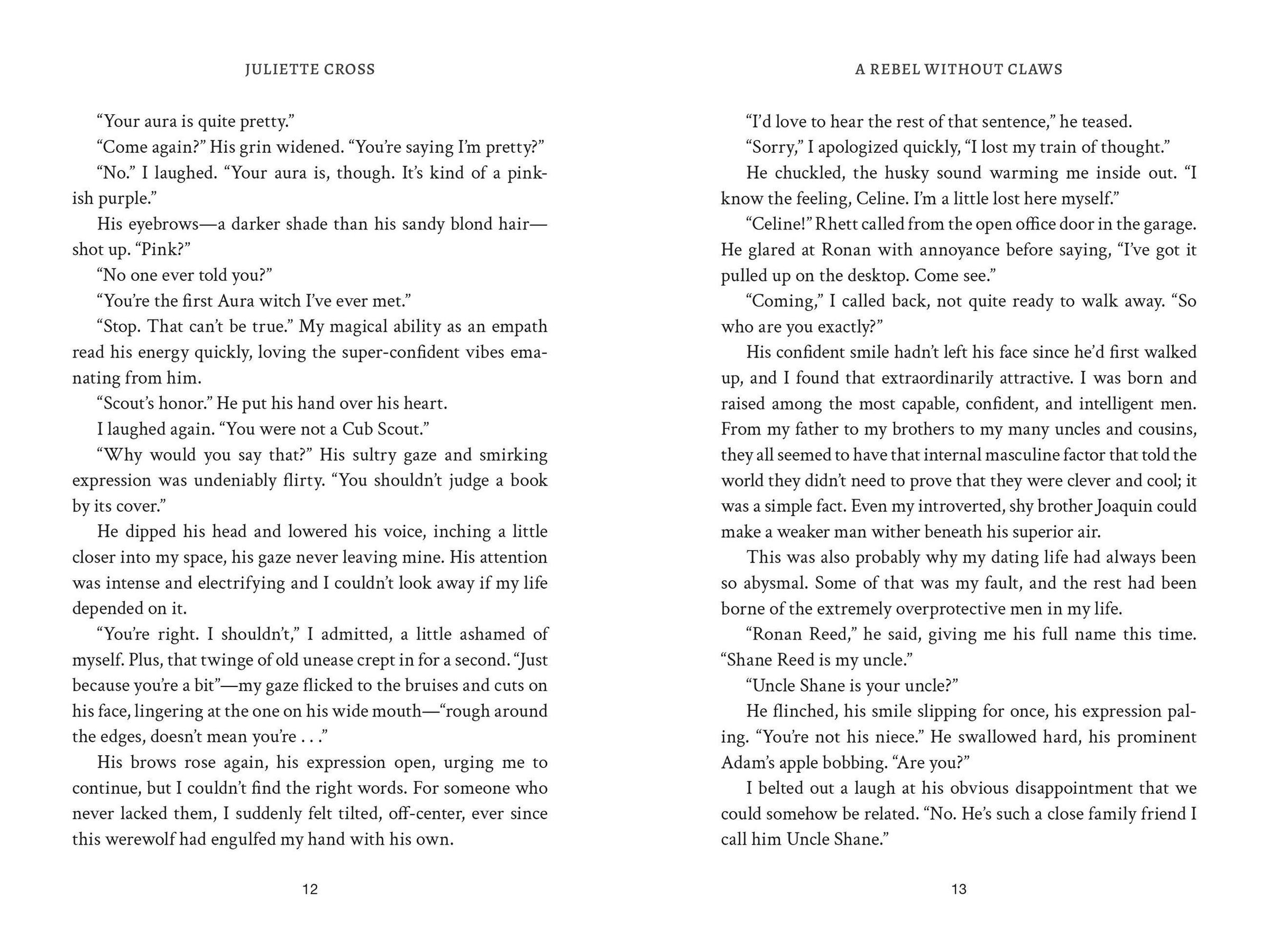 After yet another bar fight and arrest, bad boy Ronan Reed moves in with his uncle's Blood Moon pack in Louisiana and makes plans to lead his own team in the werewolf cage-fighting ring. But when he sets eyes on sweet Celine Cruz, his whole world stops and she becomes a tantalizing distraction he doesn't need. As an Aura witch, Celine always wants to help heal the broken. She's all too familiar with anxiety, so she's dedicated her life to helping those in need. But the second she meets Ronan, she's in trouble. He's everything her close-knit family would hate. So why can't she stay away? Ronan thinks she's a good girl. Little does he know, all Celine wants is to do wicked things with the bad boy werewolf, who revels in breaking all her rules. But as their forbidden romance becomes too tempting to resist, Ronan notices that the wolves are circling . . . and they're coming after his mate.