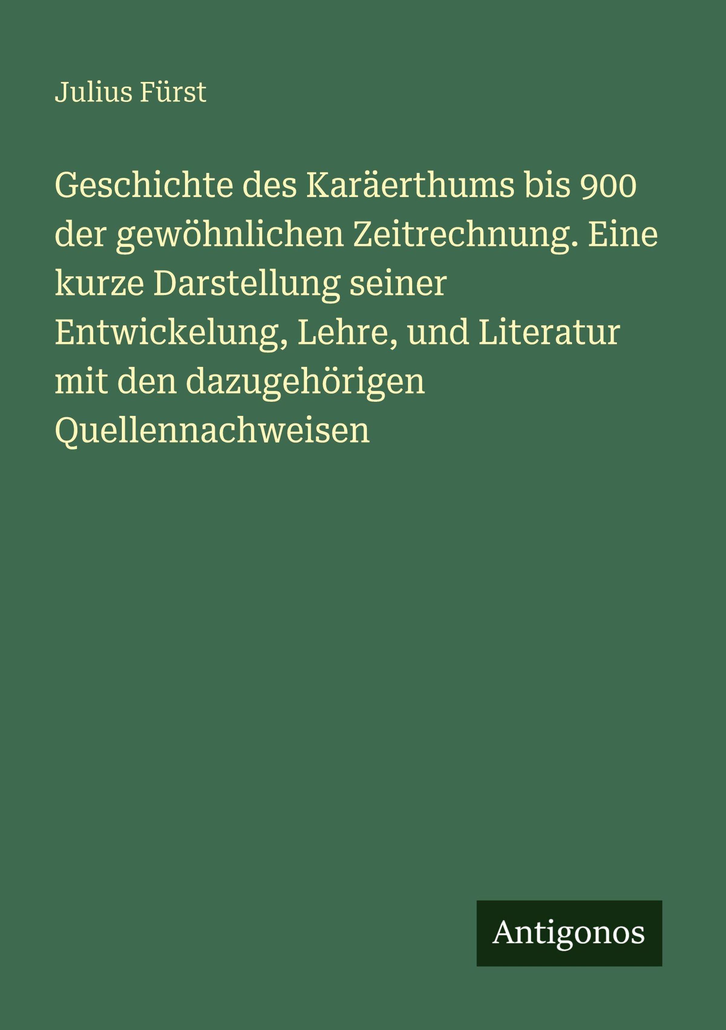 Geschichte des Karäerthums bis 900 der gewöhnlichen Zeitrechnung. Eine kurze Darstellung seiner Entwickelung, Lehre, und Literatur mit den dazugehörigen Quellennachweisen