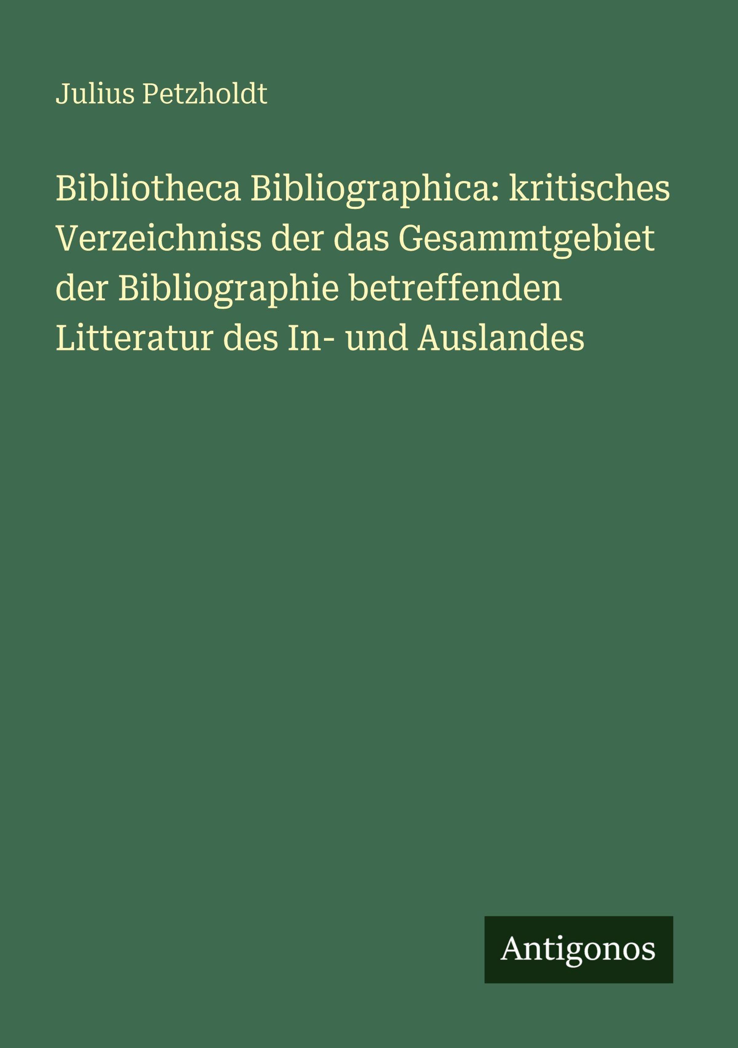 Julius Petzholdt: Bibliotheca Bibliographica: kritisches Verzeichniss der das Gesammtgebiet der Bibliographie..., Kartoniert / Broschiert