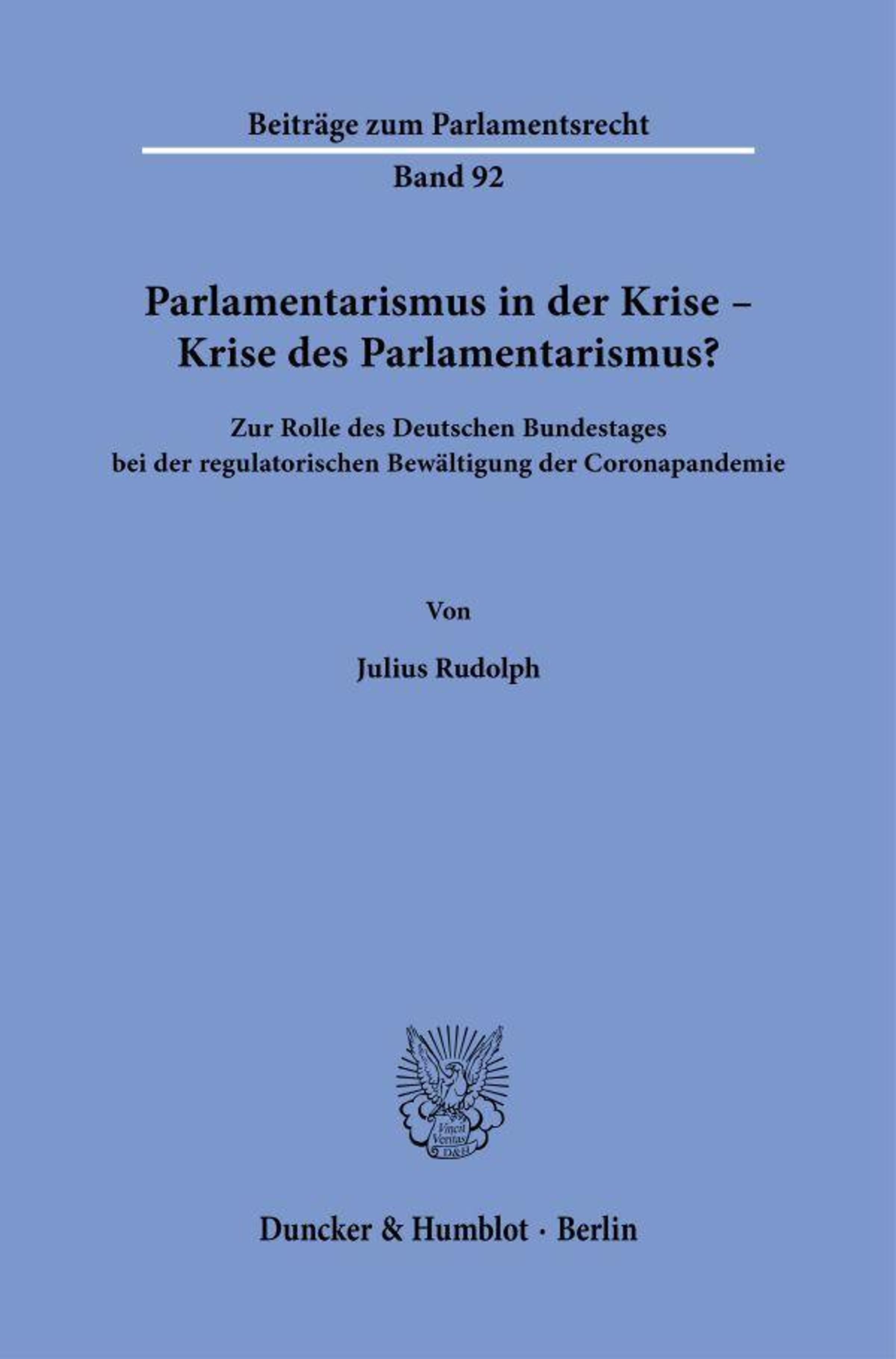 'Parliamentarism in Crisis - A Crisis of Parliamentarism? The Role of the German Bundestag in the Regulatory Response to the COVID-19 Pandemic': Was the COVID-19 pandemic an hour of executive power only? Parliament has often been criticized for failing to fulfill its constitutional responsibilities in the regulatory management of the crisis. In light of this perception - where the COVID-19 crisis is also perceived as a crisis of parliamentarism - this study conducts a comprehensive analysis of both the practical and legal dimensions of parliamentary functioning during the pandemic, using the German Bundestag as a case study.
