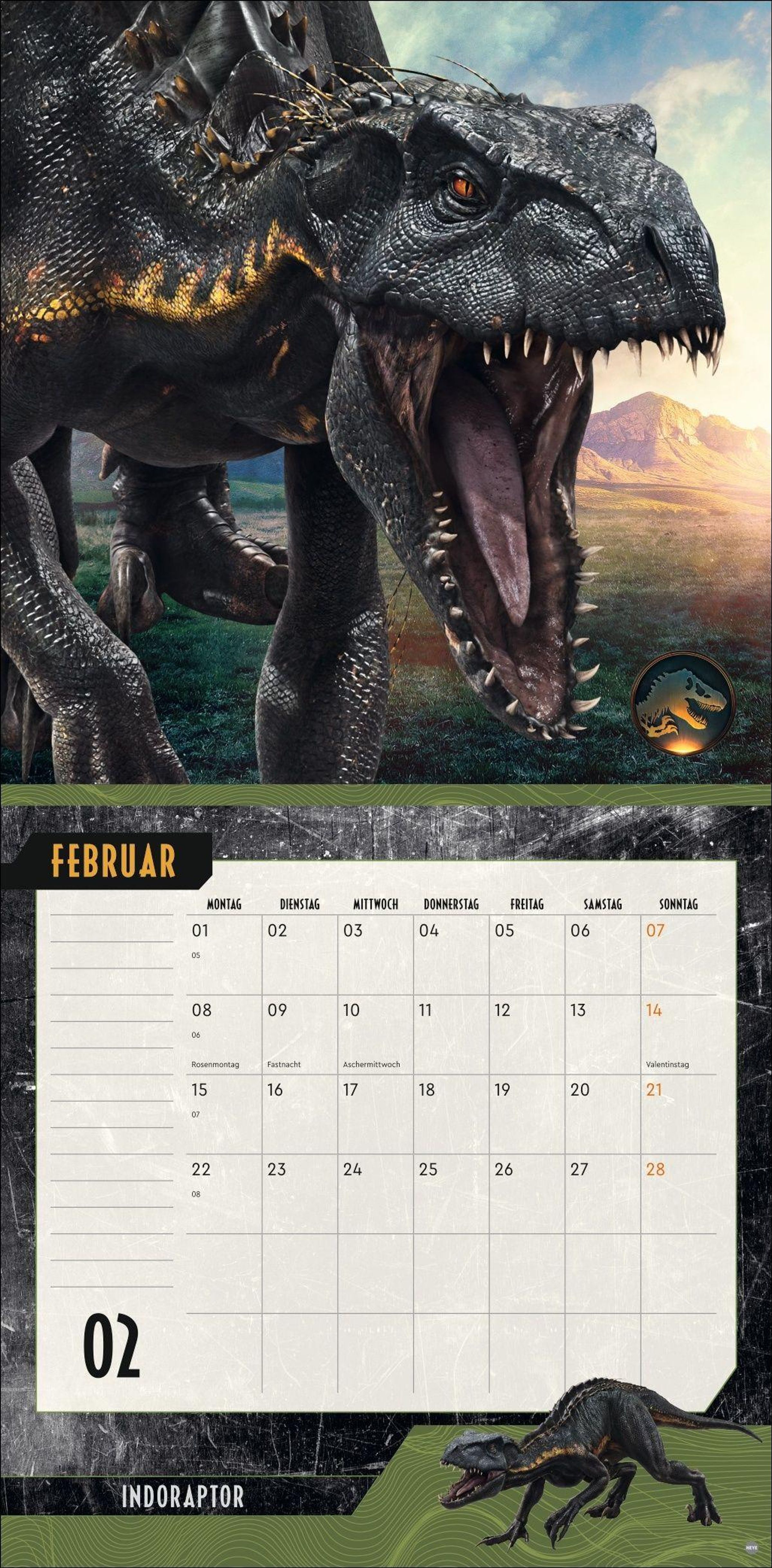 T-Rex, Sinoceratops, Velociraptor und Co.: der Jurassic World Wandkalender 2027 zum Eintragen