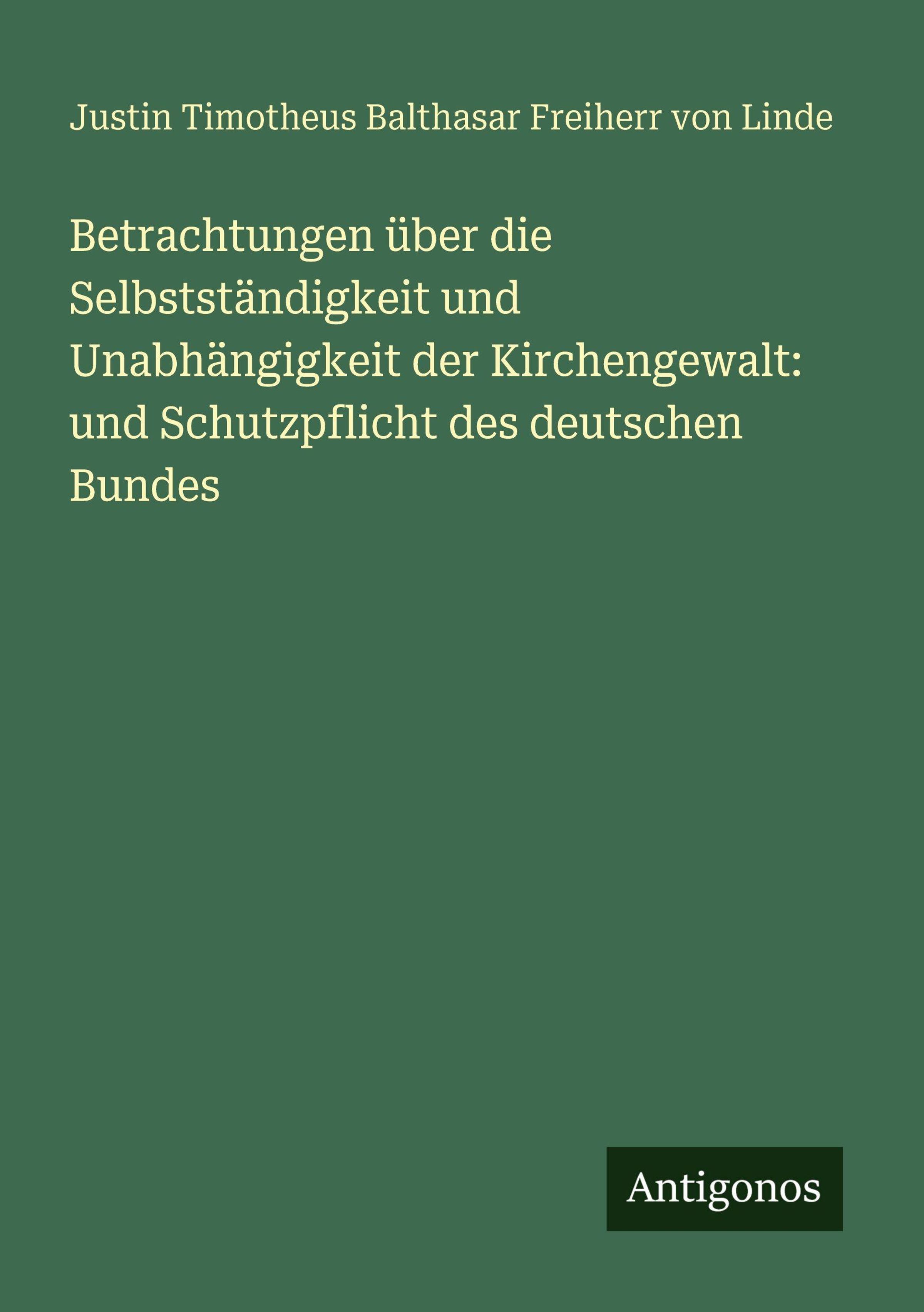 Betrachtungen über die Selbstständigkeit und Unabhängigkeit der Kirchengewalt: und Schutzpflicht des deutschen Bundes