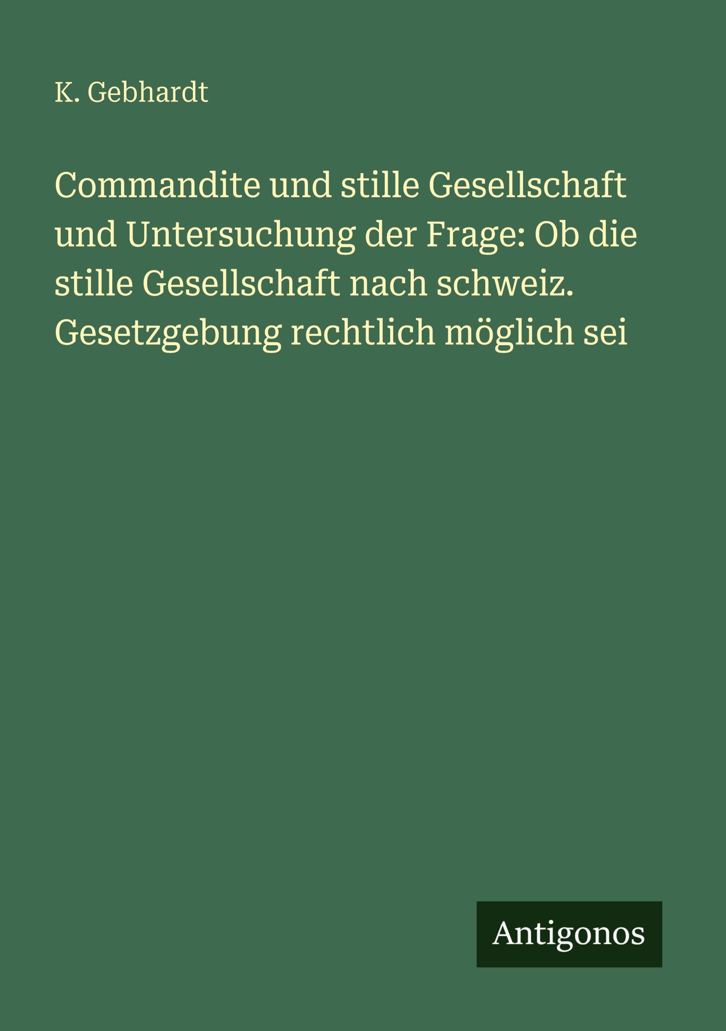 K. Gebhardt: Commandite und stille Gesellschaft und Untersuchung der Frage: Ob die stille Gesellschaft nach..., Kartoniert / Broschiert