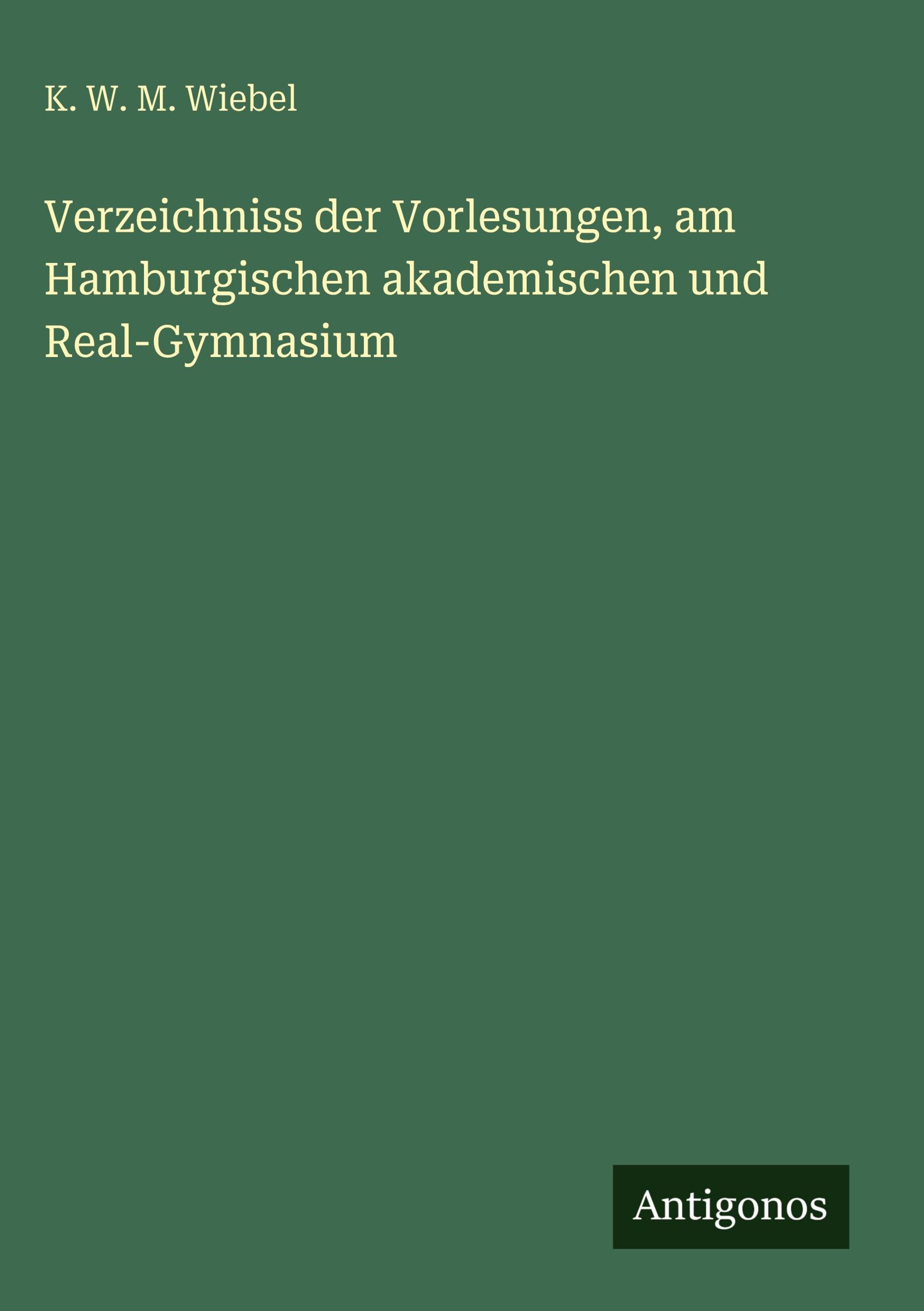 K. W. M. Wiebel: Verzeichniss der Vorlesungen, am Hamburgischen akademischen und Real-Gymnasium, Gebunden