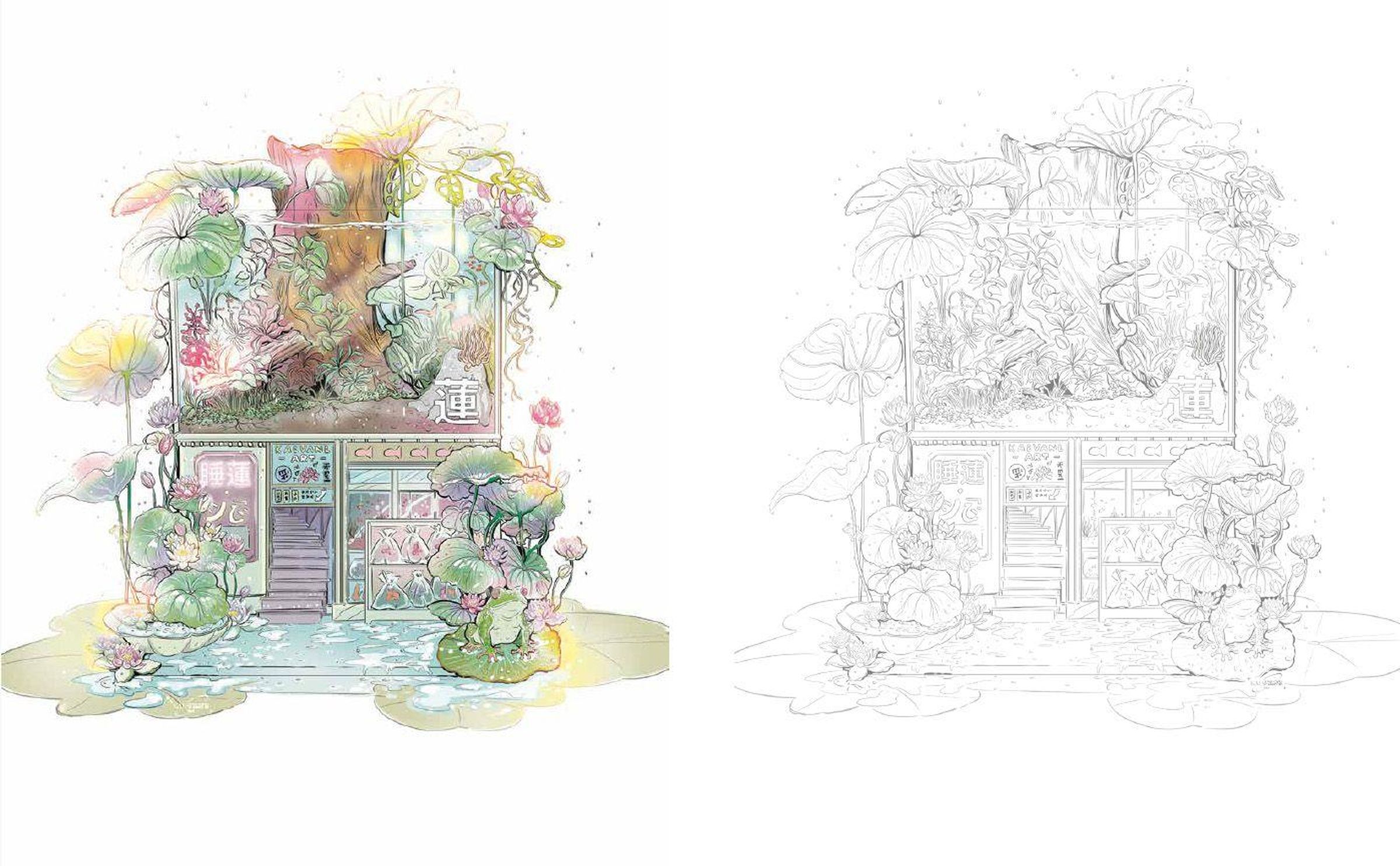 Luxury Coloring: Asiatische Läden zum Ausmalen