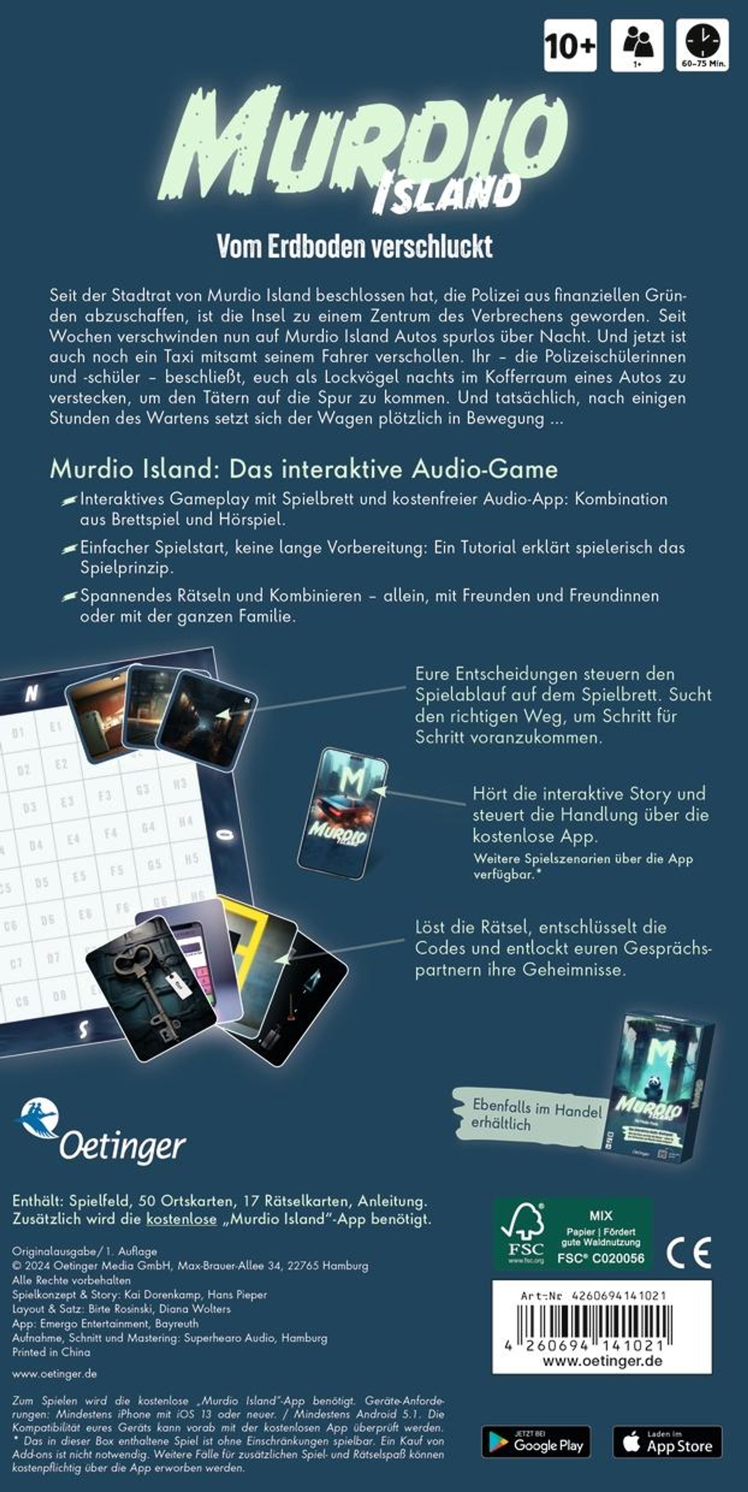Seit der Stadtrat von Murdio Island beschlossen hat, die Polizei aus finanziellen Gründen abzuschaffen, ist die Insel zu einem Zentrum des internationalen Verbrechens geworden. Ihr, die Polizeischülerinnen und -schüler, seid die letzte Rettung und tretet an, um das Schlimmste zu verhindern. Seit Wochen verschwinden Autos spurlos über Nacht. Und jetzt ist auch noch ein Taxifahrer unauffindbar verschollen. Ihr beschließt, euch als Lockvögel nachts im Kofferraum eines besonders wertvollen Autos zu verstecken und abzuwarten, was passiert. Und tatsächlich, ein Ruck und der Wagen setzt sich in Bewegung. Jetzt seid ihr dran! Eure Entscheidungen steuern das Krimi-Hörspiel in die eine oder andere Richtung. Ihr löst Rätsel, entschlüsselt Codes und kommt so der Lösung des Falls nach und nach näher. Dabei entdeckt ihr einen geheimnisvollen Ort, von dem auf Murdio Island noch nie zuvor jemand etwas gehört hat.