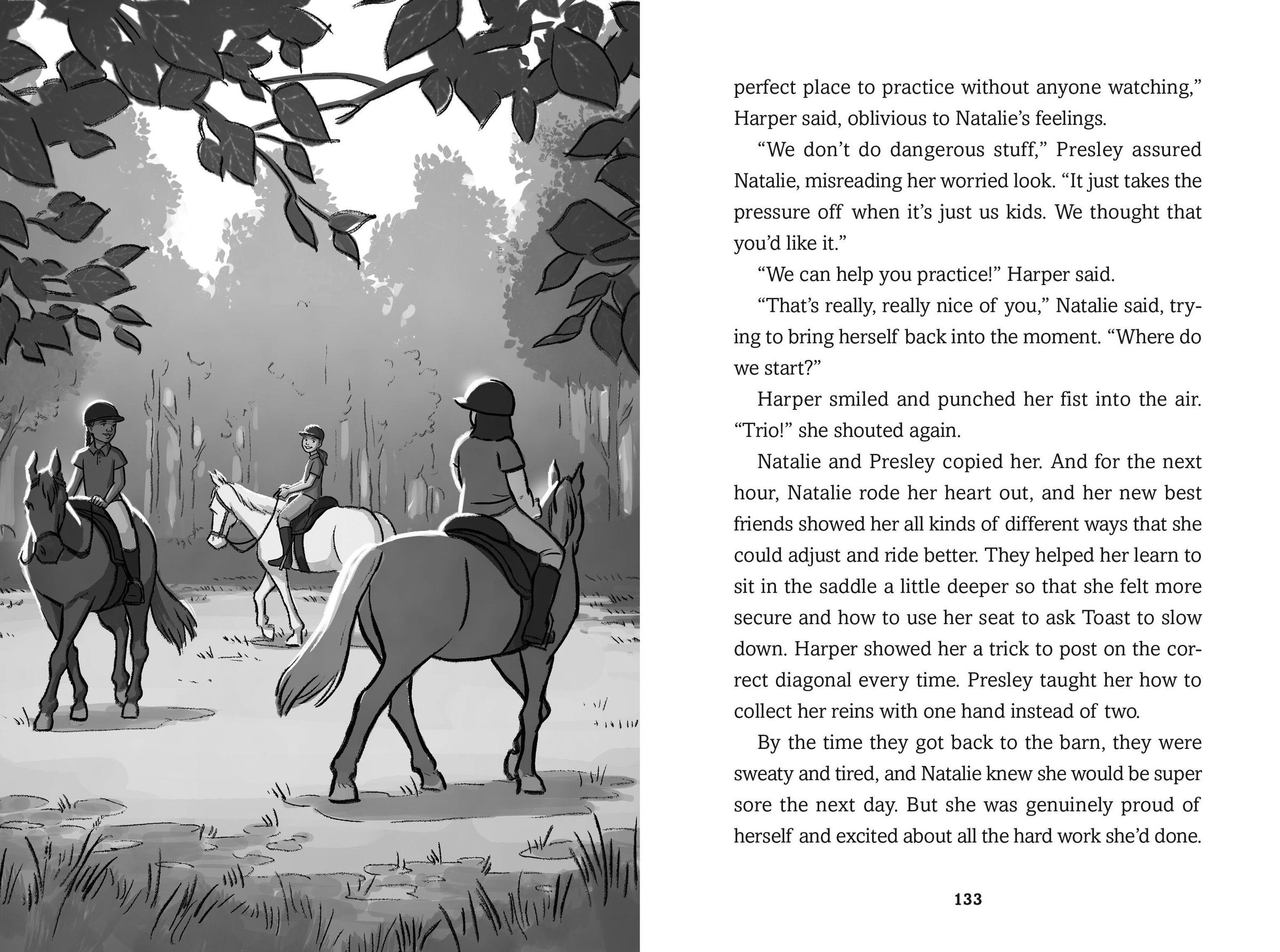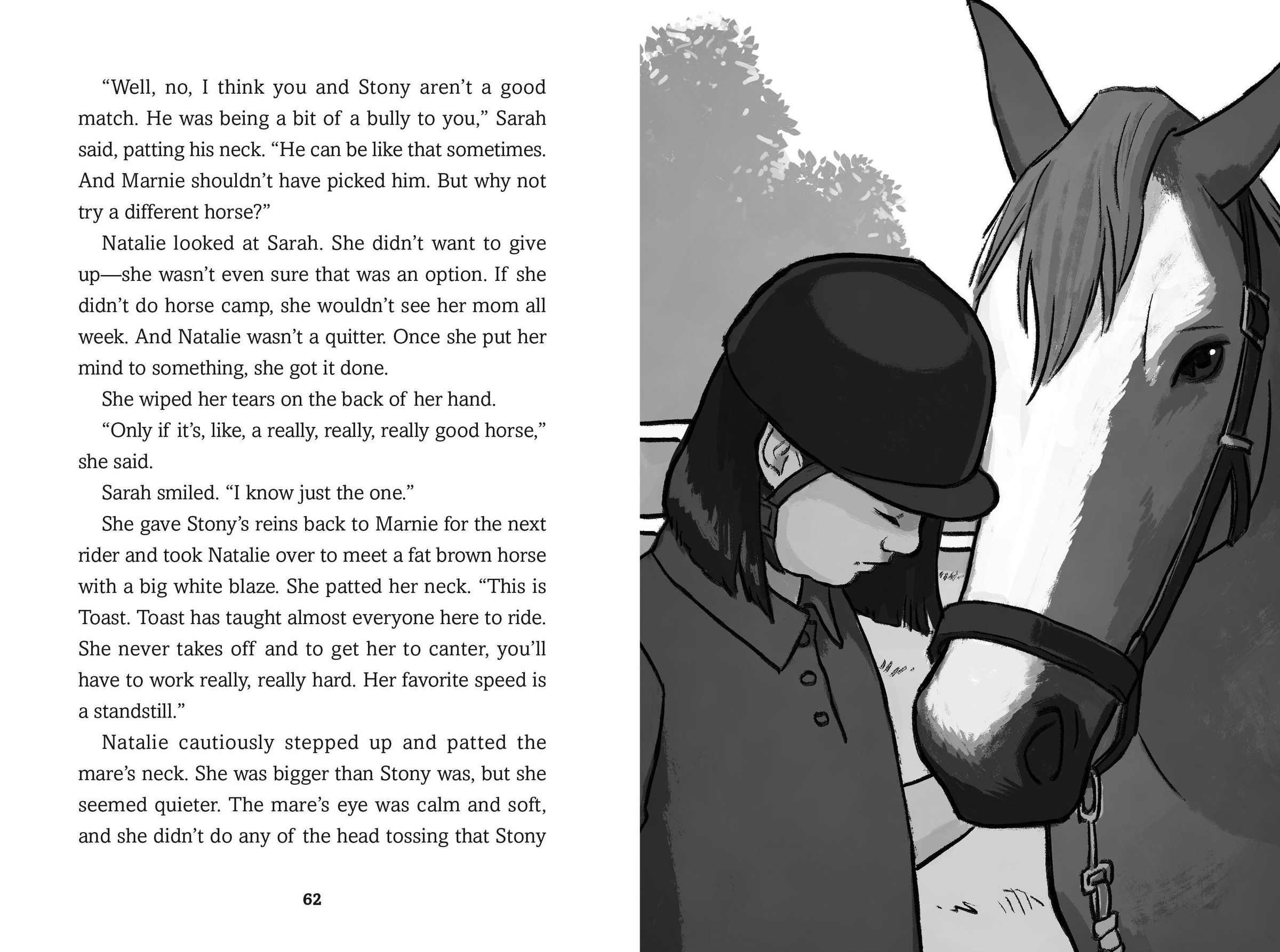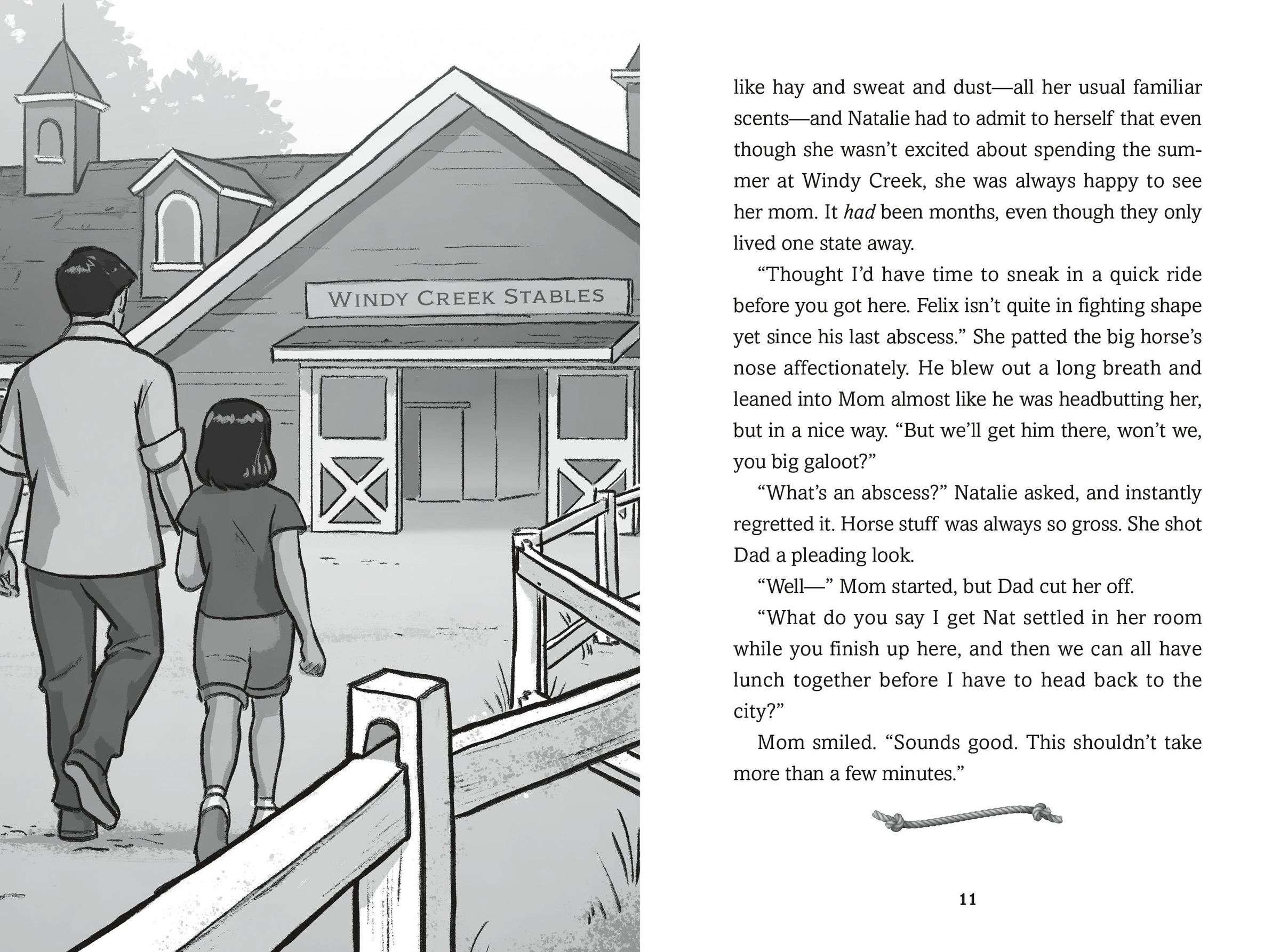 With no choicebut to learn to ride, Natalie begrudgingly participates in Windy Creek's summer horse camp. Alongside her is pretty, stuck-up Harper, who is a million times better with horses than Natalie is and won't let her forget it. Then there's energetic and fun Presley, who is happy to be Natalie's friend, at least. Slowly, Natalie learns that a little perseverance and grit go a long way, and if she gives the riders (and horses) at Windy Creek a chance, they'll give her one, too.