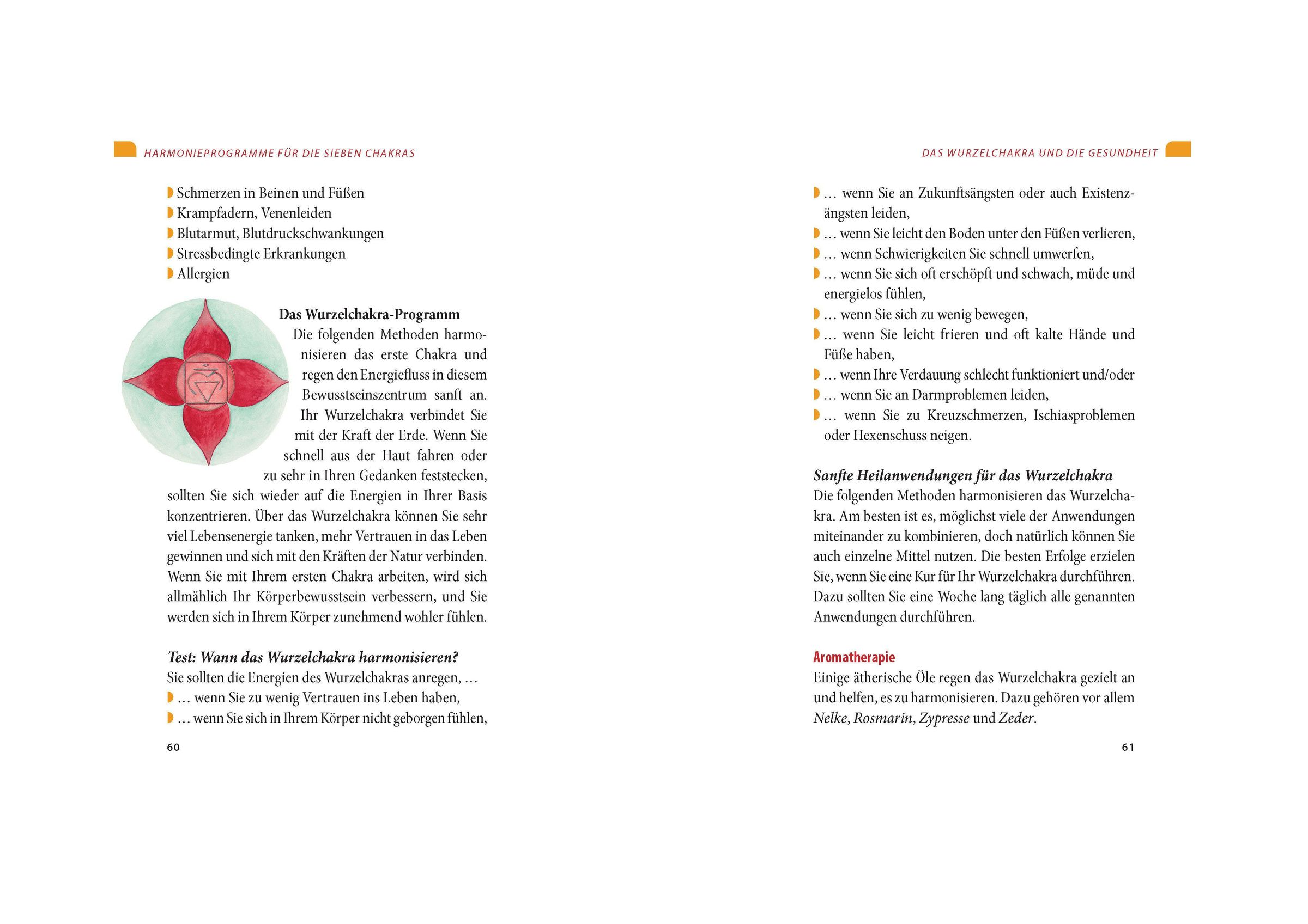 Die sieben Chakras sind wichtige Bewusstseins- und Energiezentren. Durch gezielte Übungen lassen sich feinstoffliche Blockaden in ihnen erkennen und auflösen. Dies wirkt sich positiv auf Körper, Geist und Seele aus und führt zu mehr Harmonie, Stabilität und Lebensenergie. Dieser handliche Ratgeber vermittelt alles Wissenswerte über die praktische Arbeit mit den Chakras. Über zahlreiche Tests und Programme zur Harmonisierung der Chakras bis hin zu Chakra-Yoga-Übungen werden die verschiedenen Bereiche zur Herstellung eines stabilen Gleichgewichts aufgezeigt.