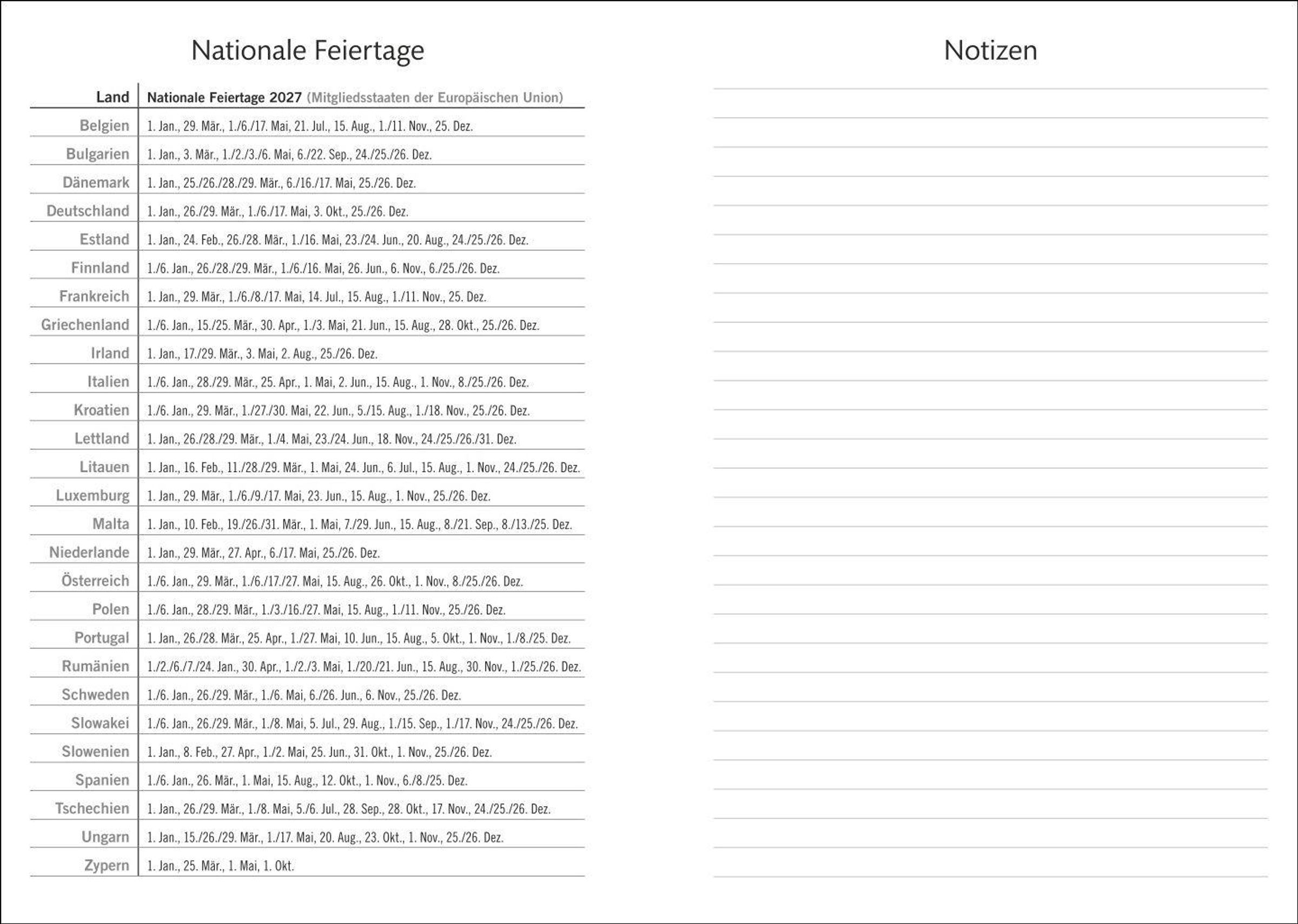 Was steht diese Woche Wichtiges an? Buchkalender mit viel Platz für Notizen, mit dem Sie stilvoll den Überblick behalten