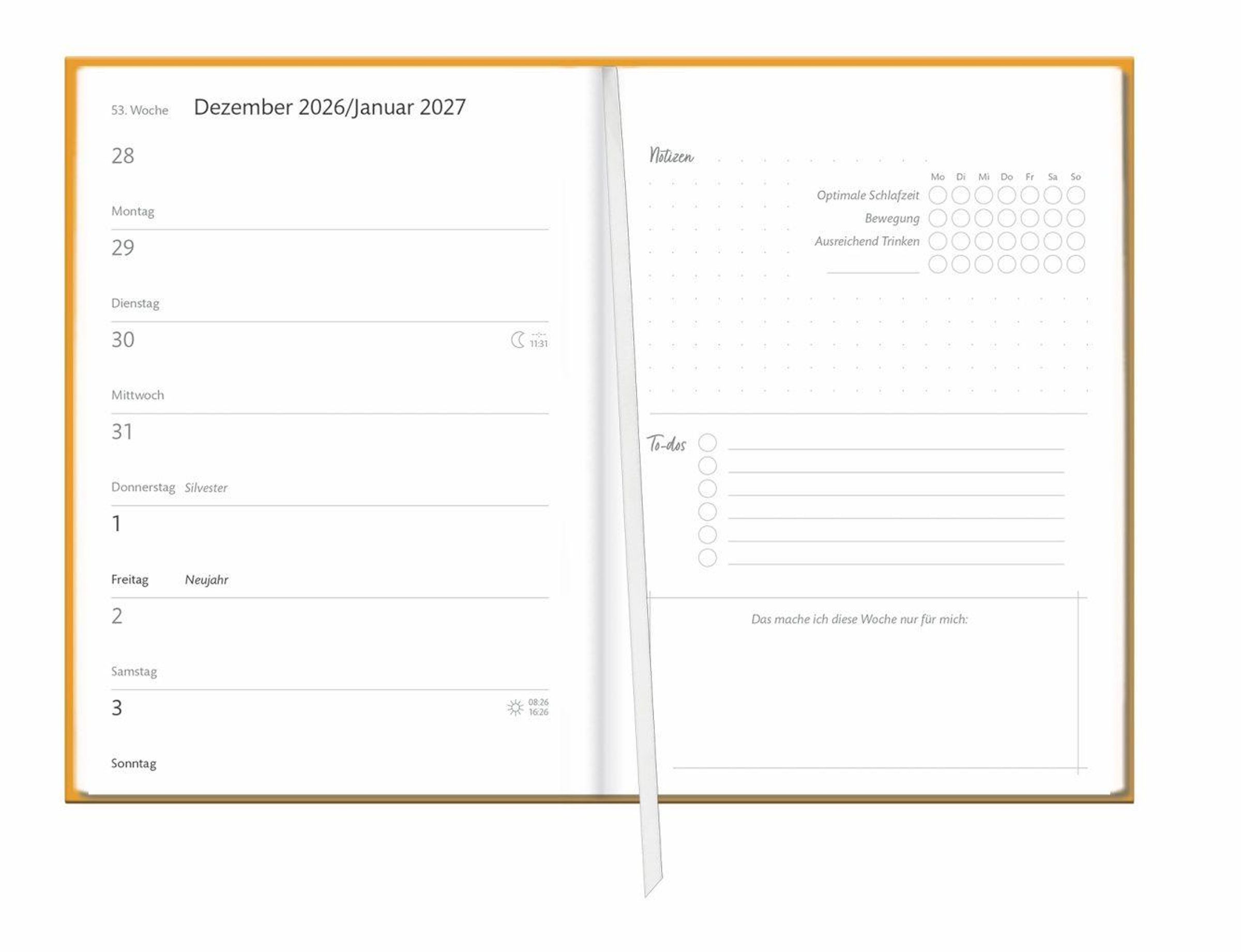 Was steht diese Woche Wichtiges an? Buchkalender mit viel Platz für Notizen, mit dem Sie stilvoll den Überblick behalten