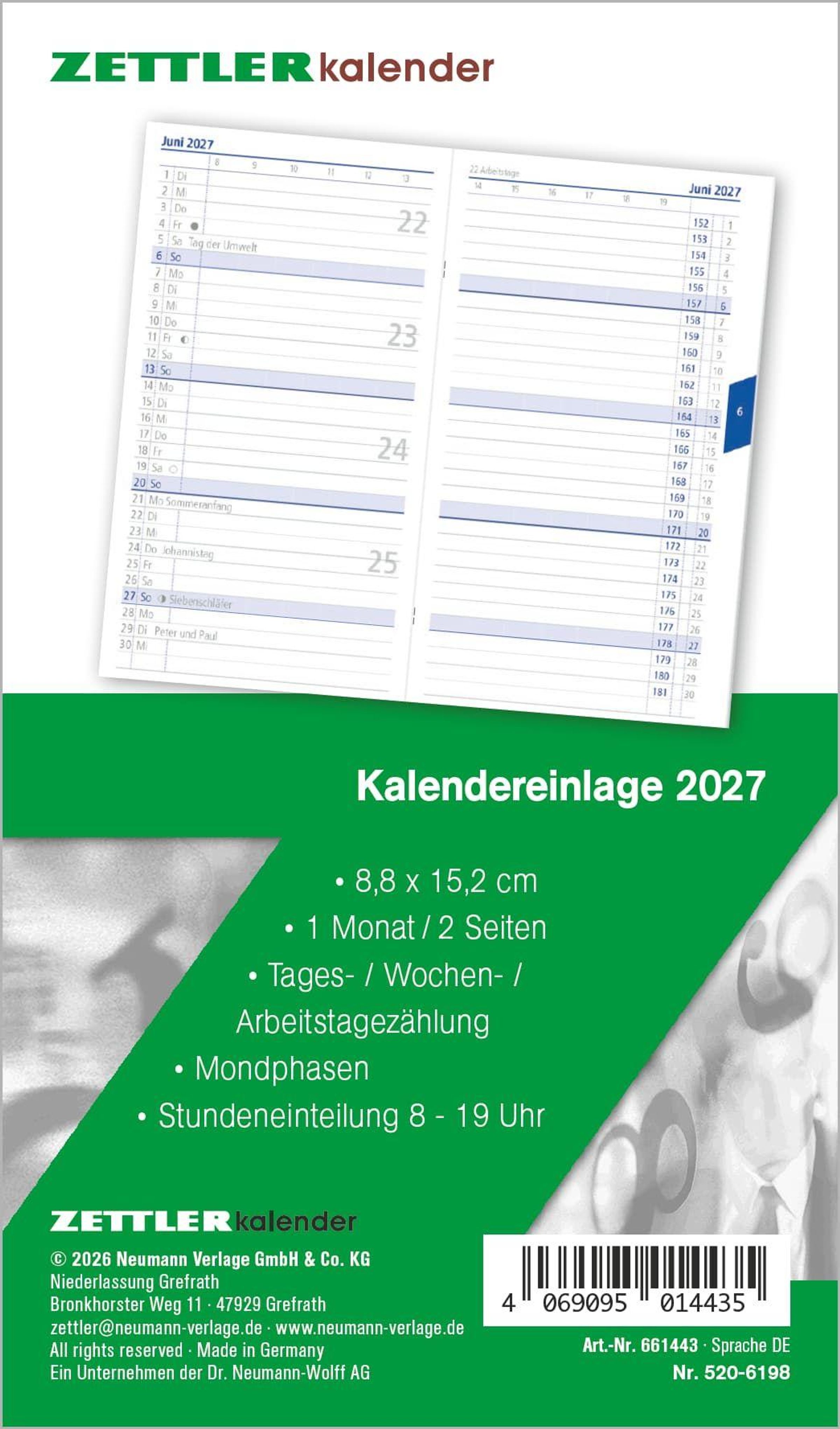 Mit der Zettler Kalenderersatzeinlage TP 1M/2S 2027 nutzen Sie Ihren Taschenplaner nachhaltig weiter -- kompakt, funktional und perfekt für die tägliche Organisation.