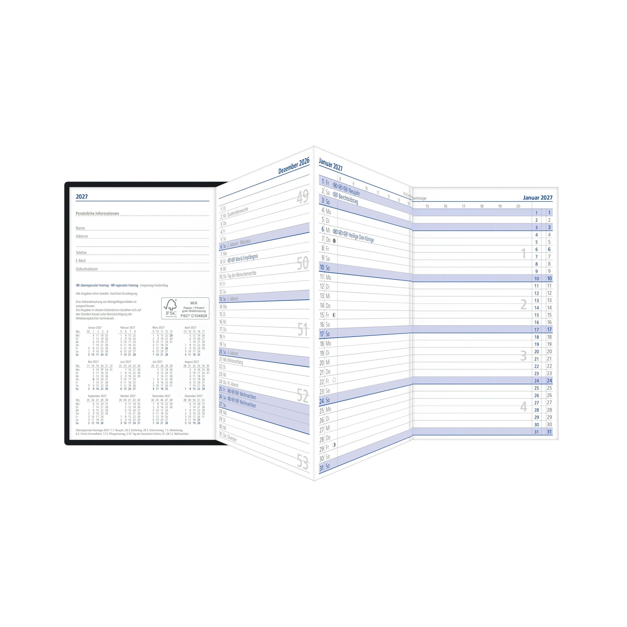 Zusatzinformationen: Mit Tages-, Wochen- und Arbeitstagezählung sowie Mondphasen