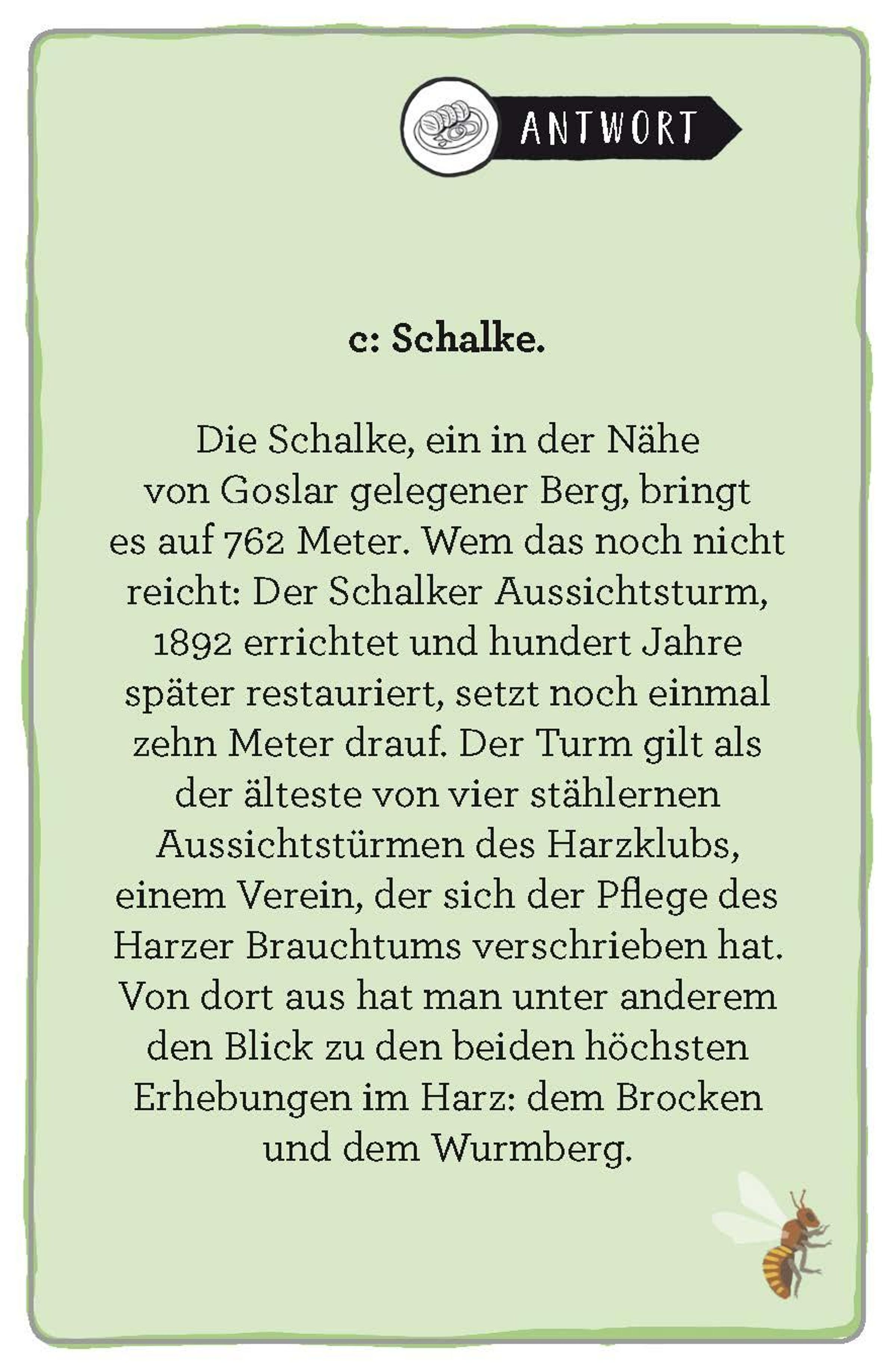 Wie gut kennst du den Harz? Kultur und Geschichte, Action und Genuss in einer Natur, die ihresgleichen sucht - das ist Harz pur! Dort, wo man schneller durch die Lüfte sausen kann als manche Hexe oder romantisch in einer Dampflok den Brocken bergan schnauft - vorbei an bizarren Felsen und durch eine Landschaft mit einer unerschöpflichen Fülle an Sagen und Mythen. Karin und André Niedostadek haben auf 100 Fragen so manch verblüffende Antwort gefunden - zum Staunen, zum Schmunzeln, zum Weitererzählen.