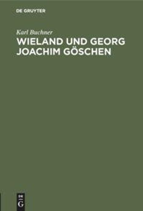 Karl Buchner: Wieland und Georg Joachim Göschen, Gebunden