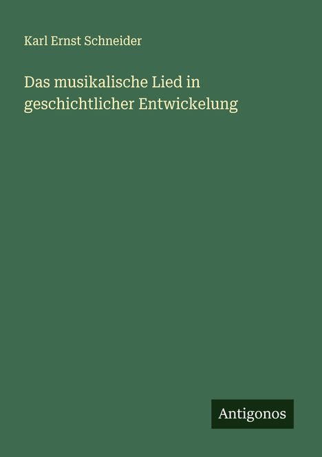 Karl Ernst Schneider: Das musikalische Lied in geschichtlicher Entwickelung, Kartoniert / Broschiert