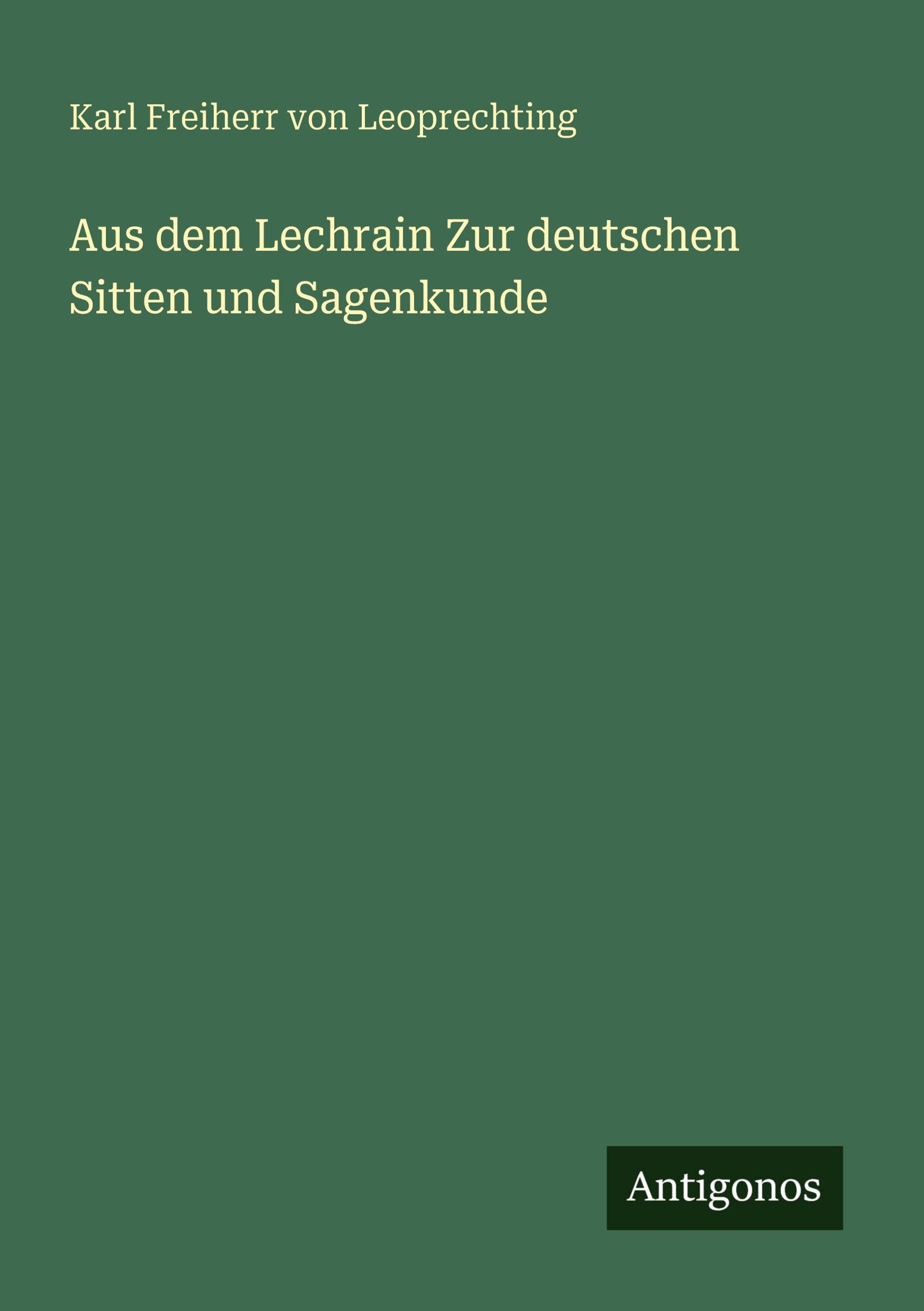 Karl Freiherr von Leoprechting: Aus dem Lechrain Zur deutschen Sitten und Sagenkunde, Kartoniert / Broschiert