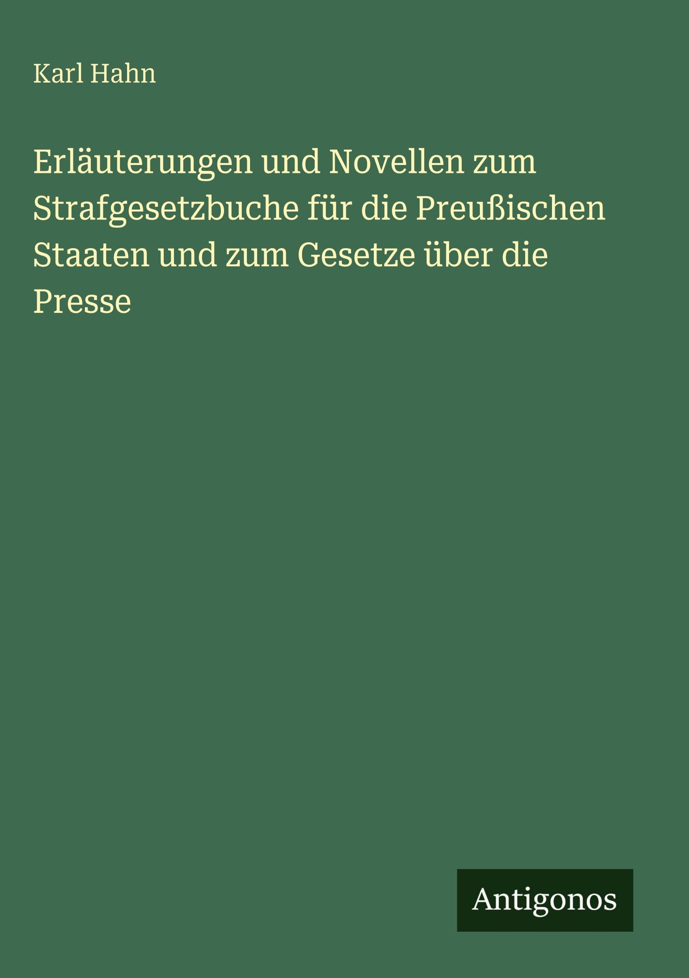 Karl Hahn: Erläuterungen und Novellen zum Strafgesetzbuche für die Preußischen Staaten und zum Gesetze über die..., Gebunden