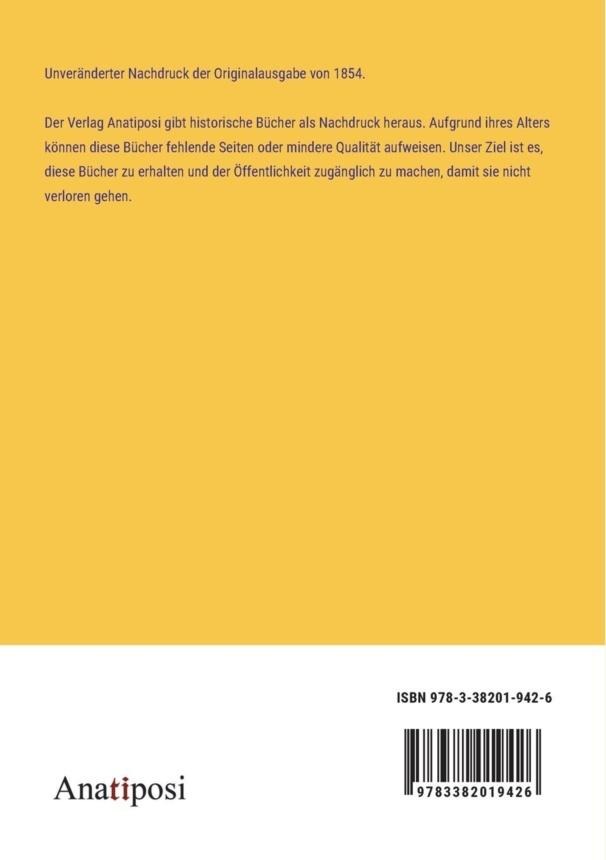 Unveränderter Nachdruck der Originalausgabe von 1854. Der Verlag Anatiposi gibt historische Bücher als Nachdruck heraus. Aufgrund ihres Alters können diese Bücher fehlende Seiten oder mindere Qualität aufweisen. Unser Ziel ist es, diese Bücher zu erhalten und der Öffentlichkeit zugänglich zu machen, damit sie nicht verloren gehen.