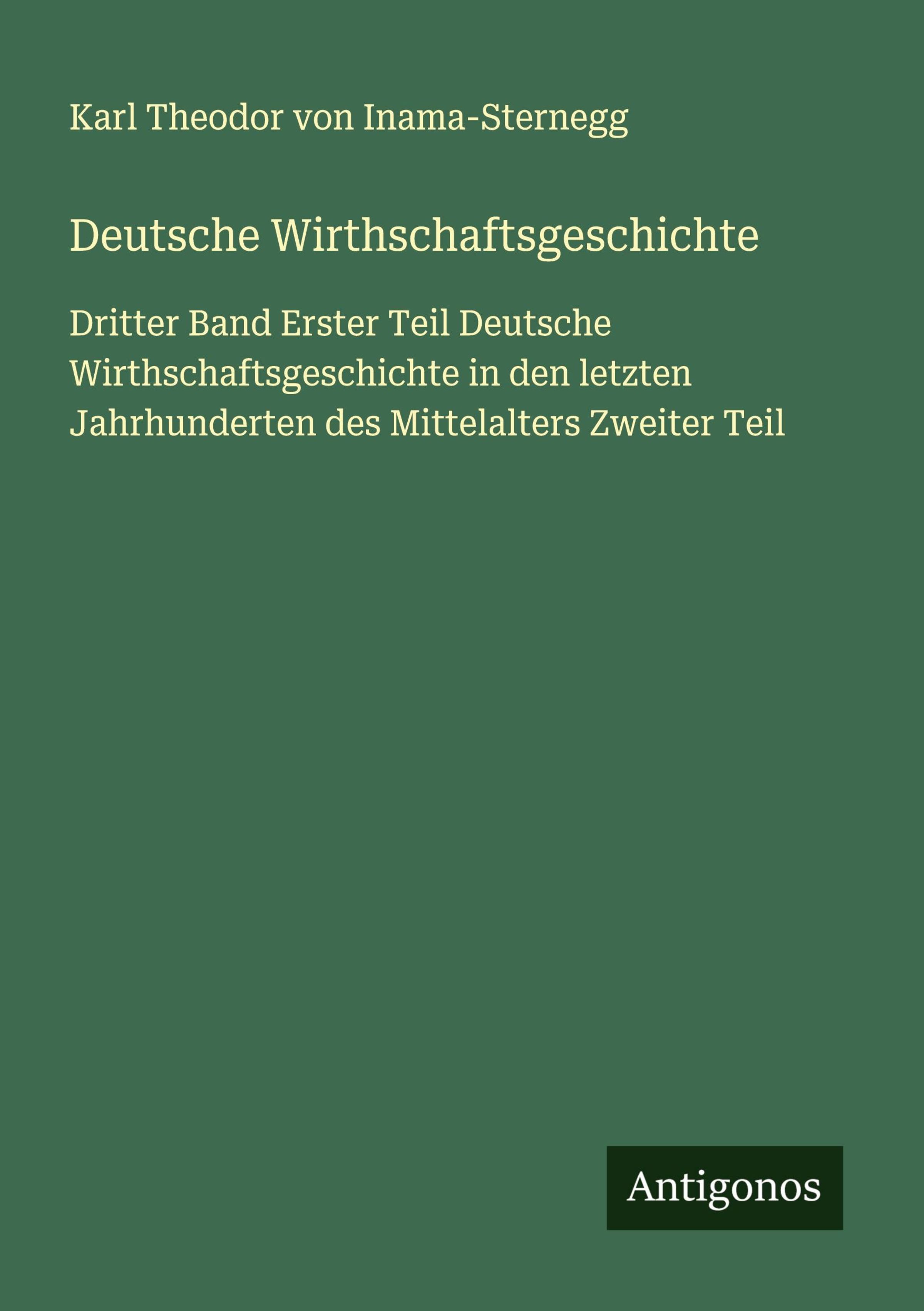 - Dritter Band Erster Teil Deutsche Wirthschaftsgeschichte in den letzten Jahrhunderten des Mittelalters Zweiter Teil