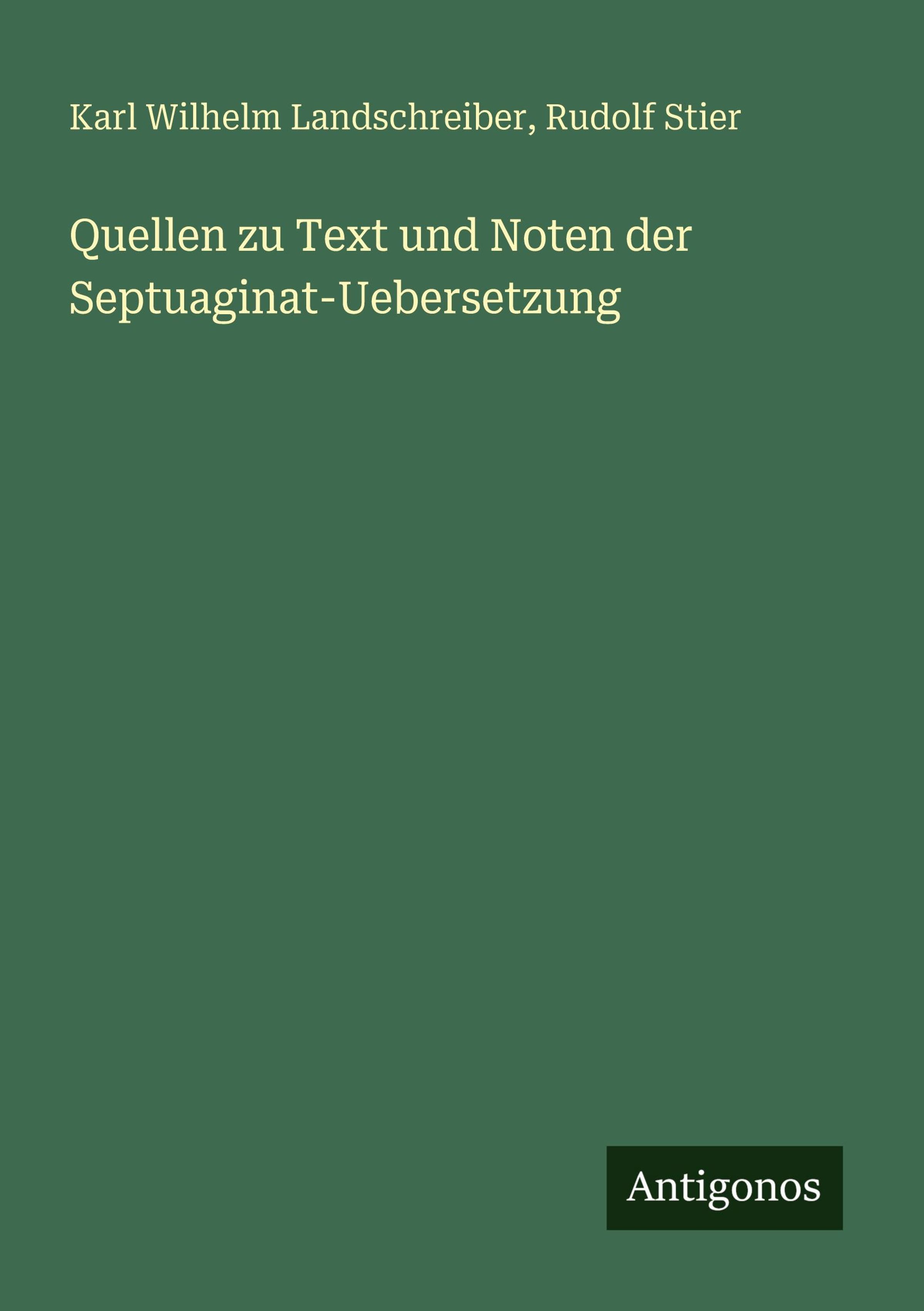Karl Wilhelm Landschreiber: Quellen zu Text und Noten der Septuaginat-Uebersetzung, Kartoniert / Broschiert
