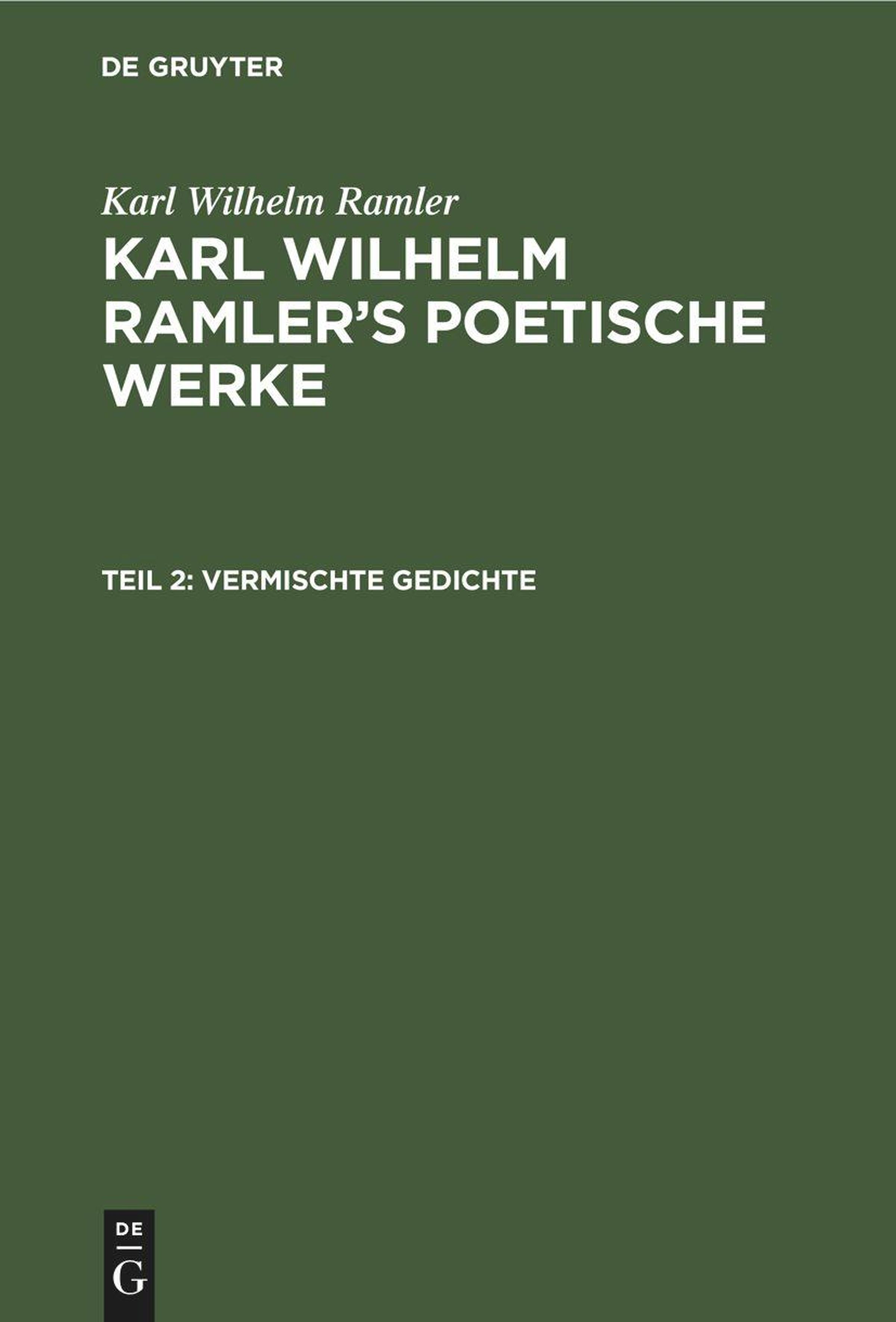 Karl Wilhelm Ramler: Vermischte Gedichte, Gebunden