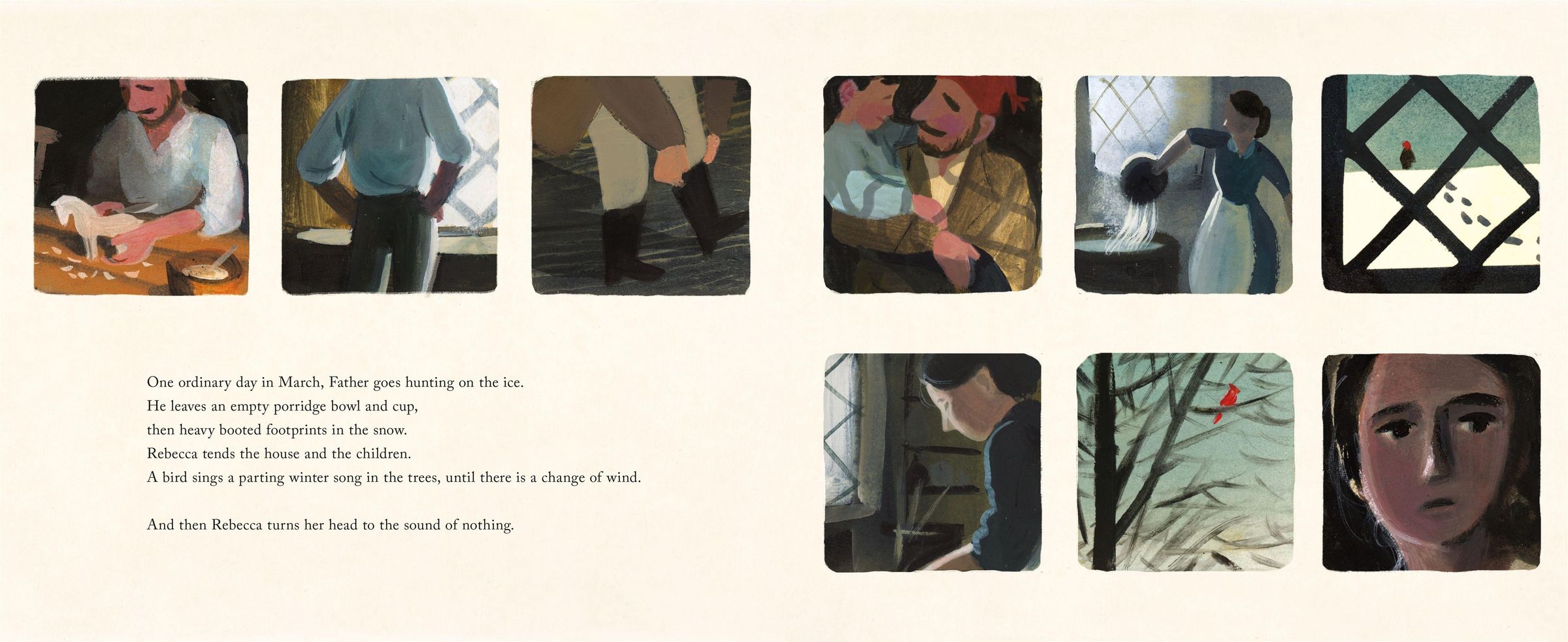 Sorrow follows Rebecca home, haunting empty chairs and quiet moments. But life must go on. There is still work to be done: new rooms to build, firewood to chop.