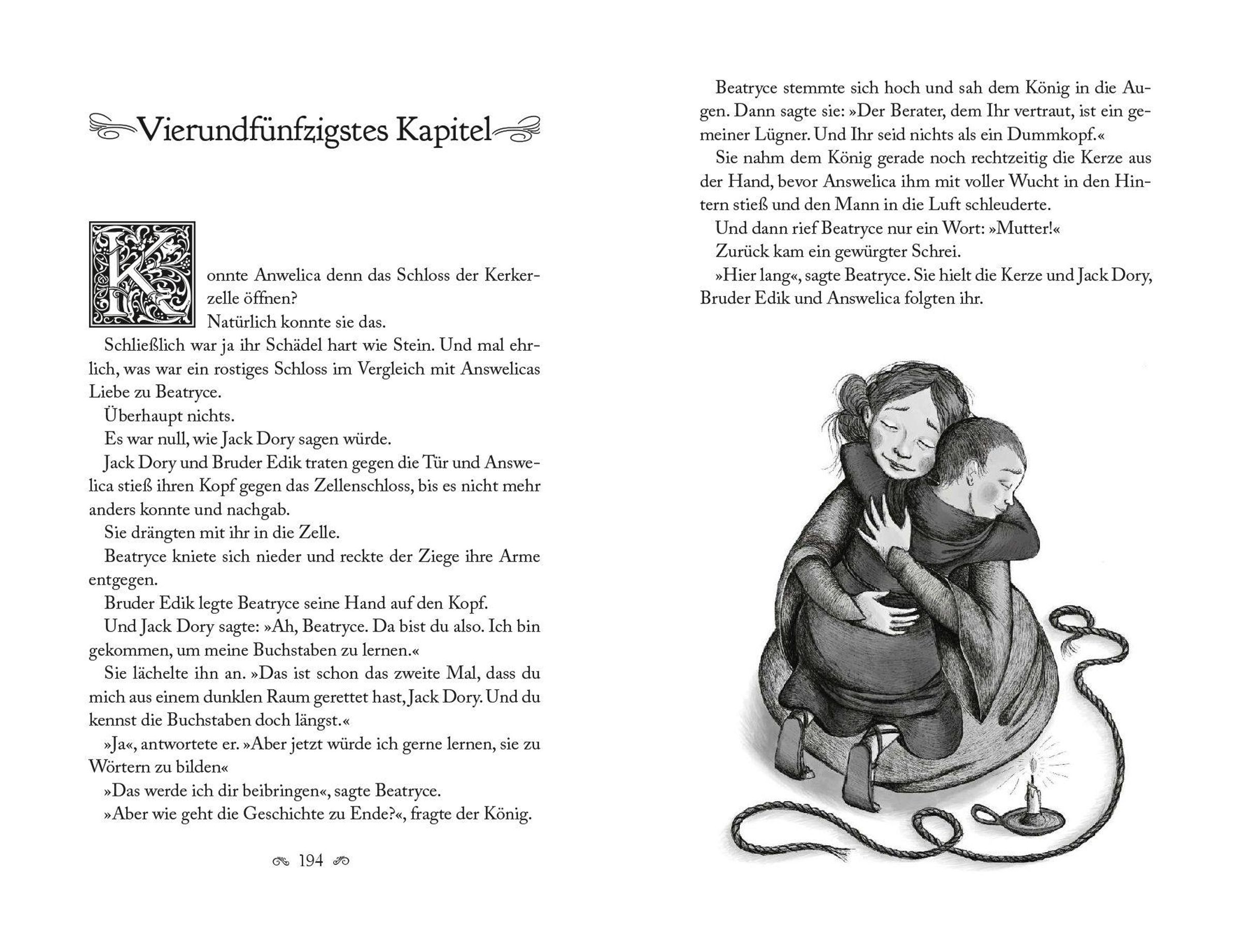 Der sanftmütige Bruder Edik findet eines Morgens im Klosterstall ein schlafendes Mädchen, liebevoll beschützt von der starrköpfigen Ziege Answelica. Das Mädchen kann sich an nichts mehr erinnern, außer an ihren Namen - Beatryce. Der Mönch pflegt sie gesund und stößt bald auf ein gefährliches Geheimnis: Der König des Landes sucht Beatryce, ob tot oder lebendig. Denn eines Tages soll ein Mädchen kommen, das den König vom Thron stürzen und die Welt verändern wird.
