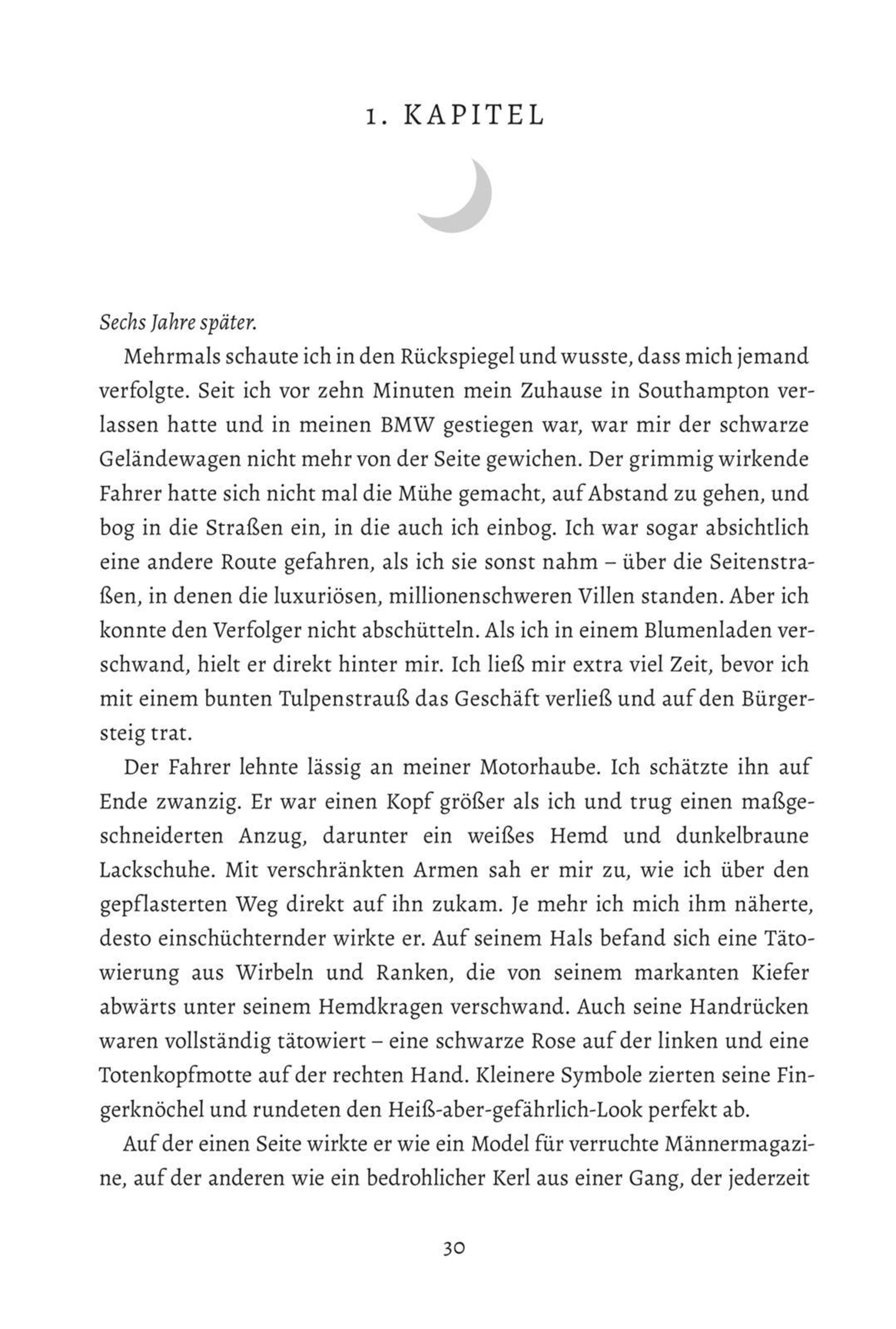 Der Kerl war ein wandelndes Bad-Boy-Klischee. Tattoos? Check. Arrogante Art? Check. Raue Stimme? Check. Fehlte nur noch ein Motorrad. Obwohl ... Sein Geländewagen hatte getönte Scheiben, also passte auch der ins Schema.