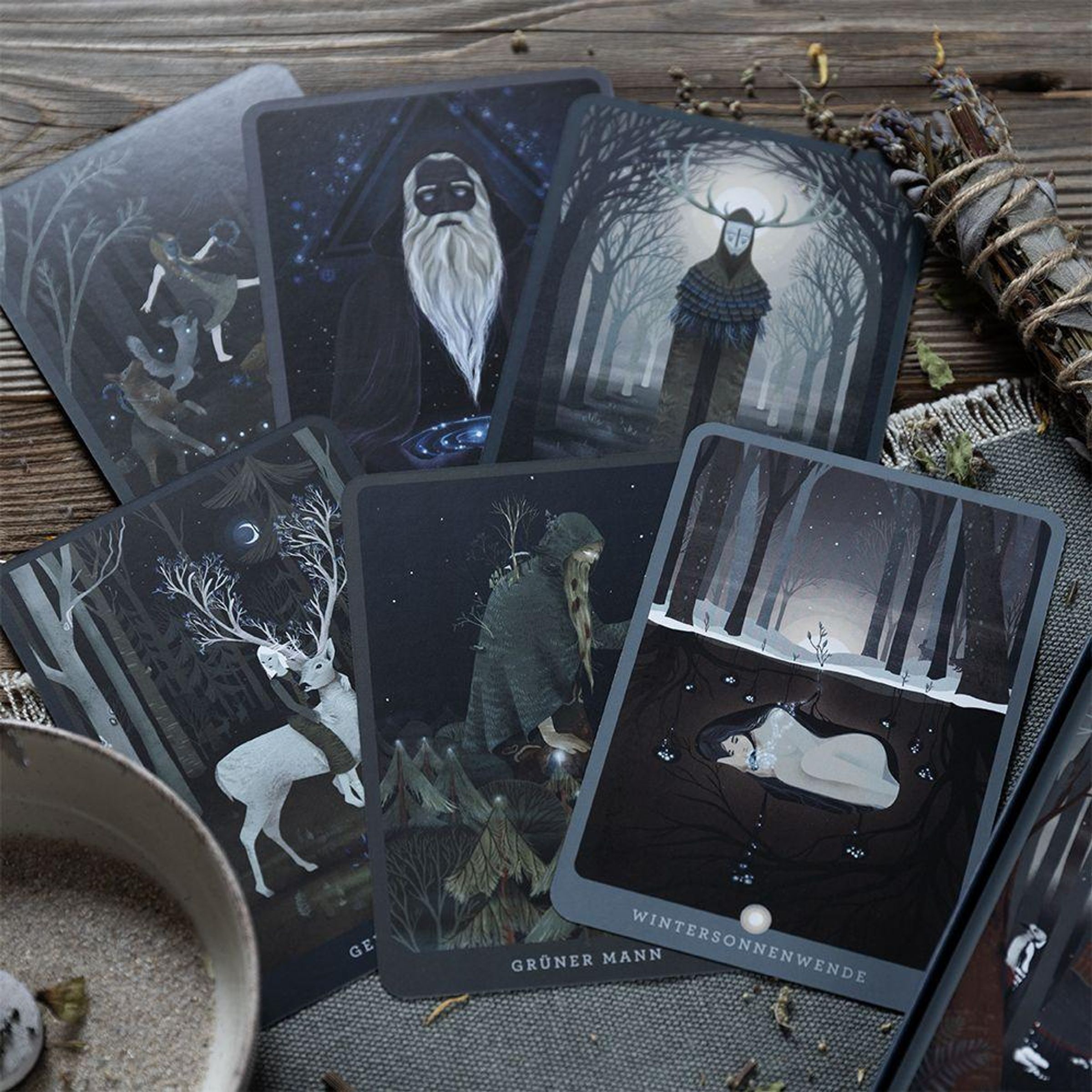- Tarotkarten mit Motiven aus Natur und paganer Mythologie
