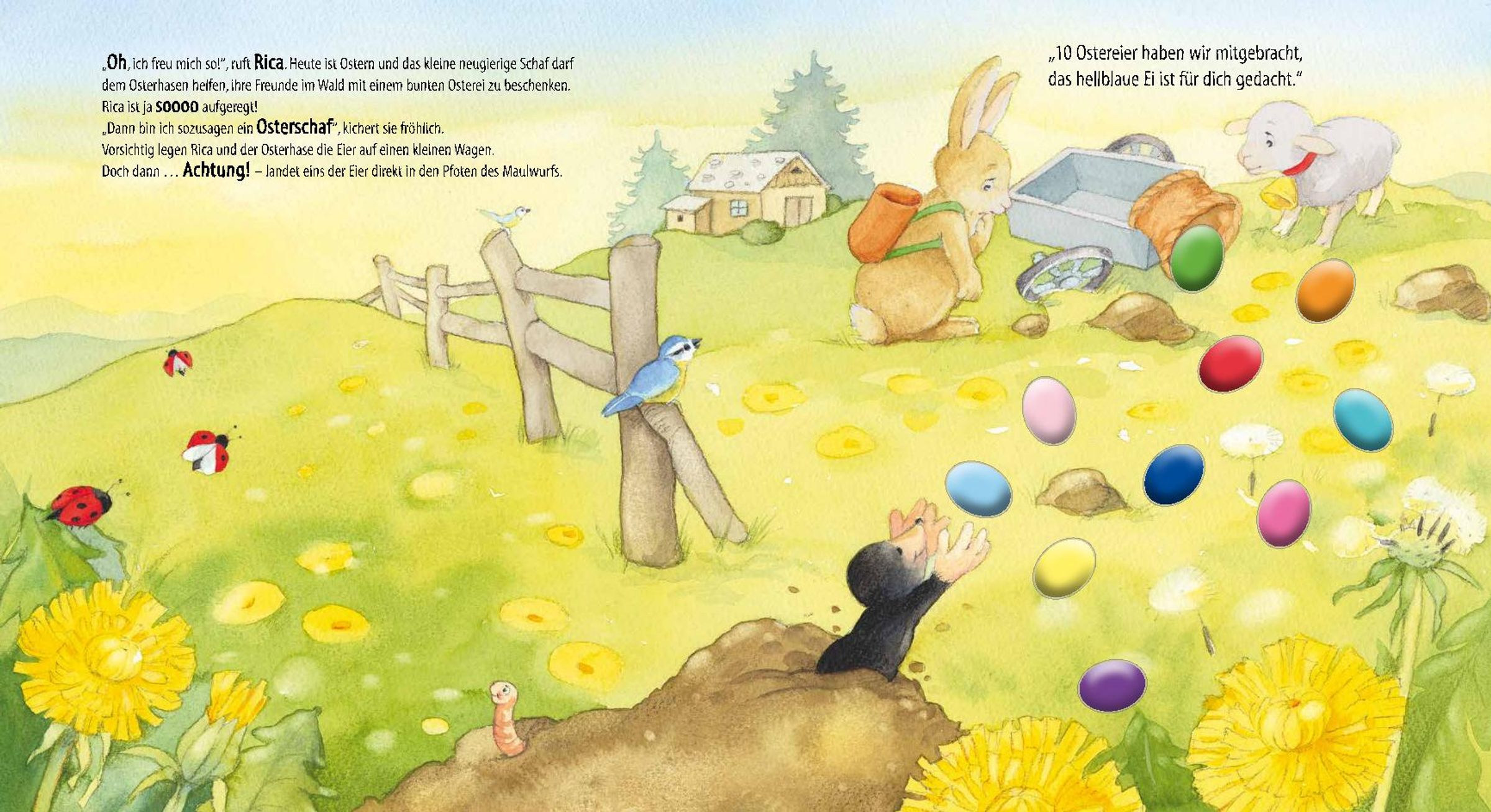 Rica feiert Ostern mit Lerneffekt für die Kleinsten: Rica ist dieses Jahr ein Osterschaf und verschenkt zusammen mit dem Osterhasen an alle ihre Freunde im Wald ein buntes und funkelndes Osterei.