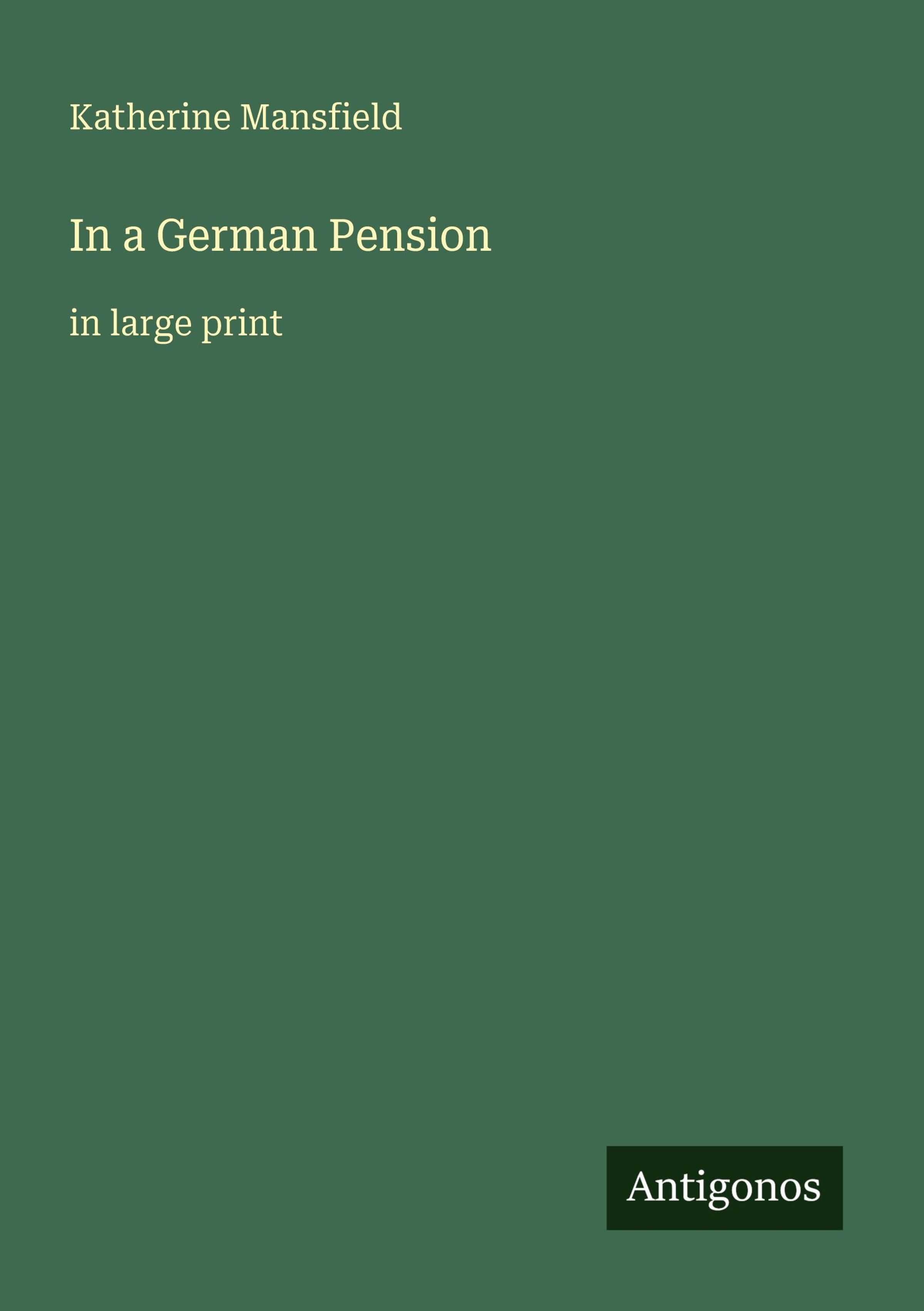 Text: Katherine Mansfield; In a German Pension; in large print; Antigonos. Hintergrund: Dunkelgrün., Buch