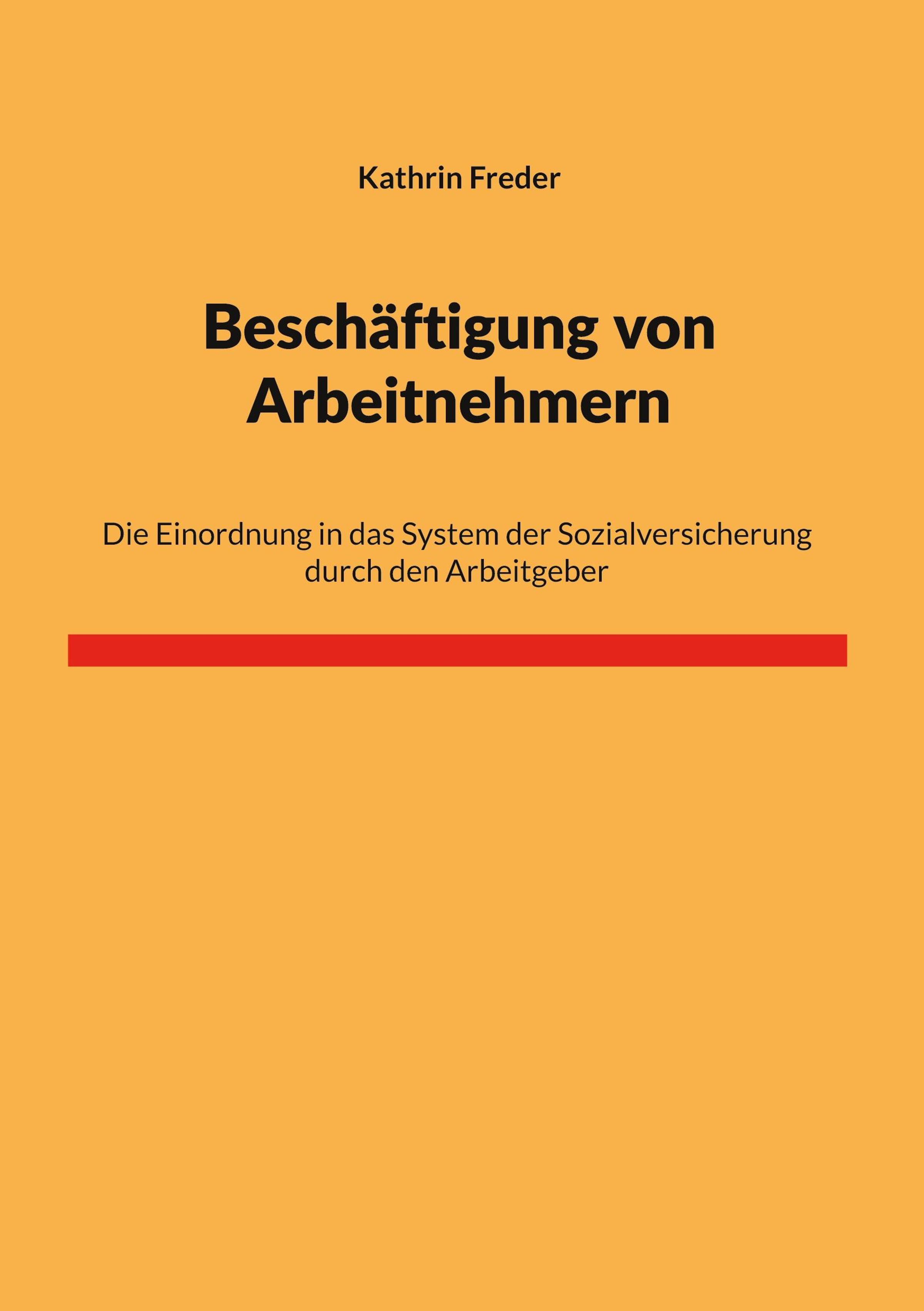 „Kathrin Frede. Beschäftigung von Arbeitnehmern.“ Oranger Hintergrund mit rotem Streifen., Buch