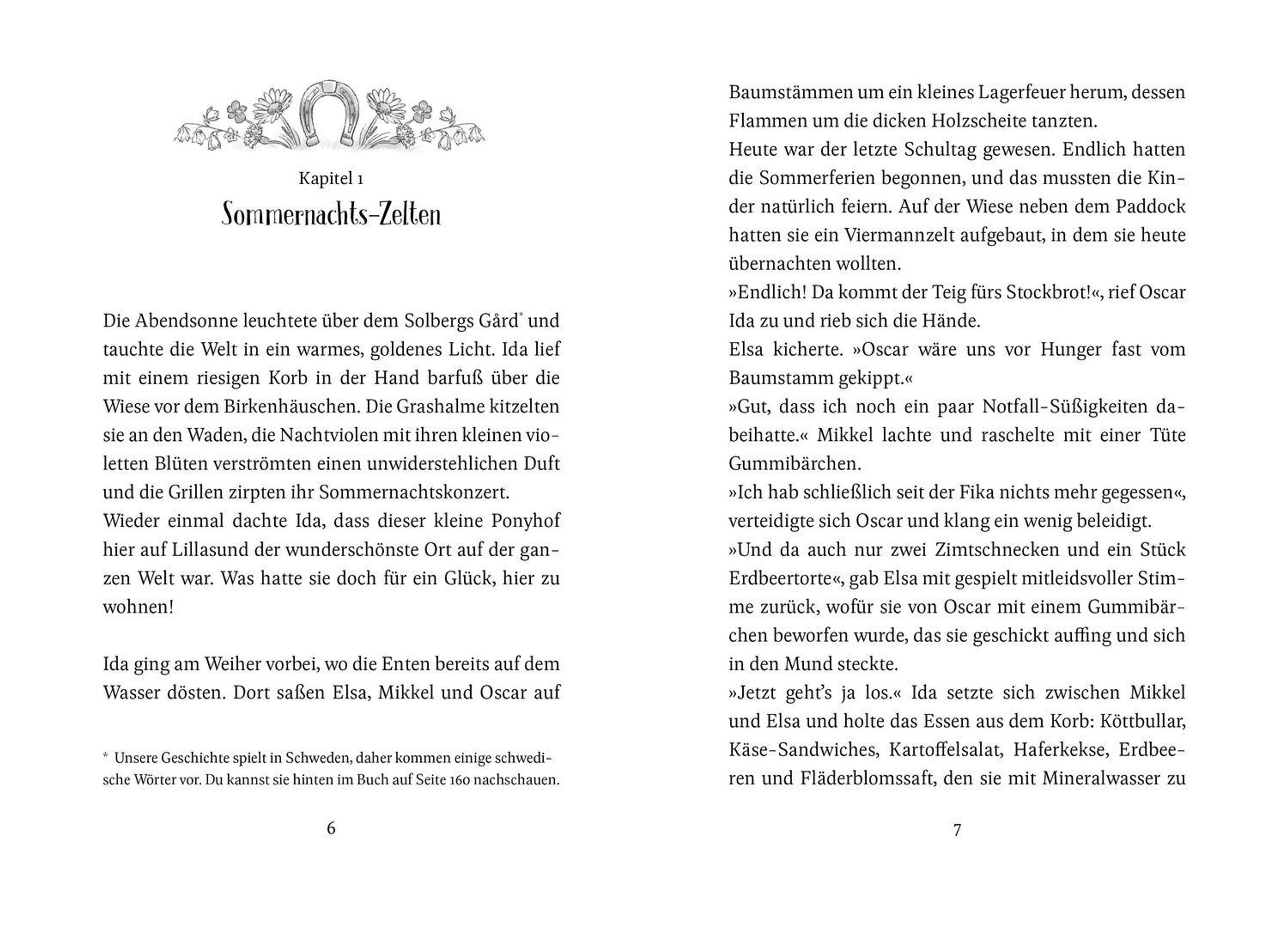Wo Ponyträume wahr werden... Band 4: Mittsommer steht vor der Tür! Das bedeutet Zelten unter der Mitternachtssonne, Picknick auf der Blumenwiese - und Trainieren für das Mittsommer-Turnier. Auch Leyla, die auf Lillasund Urlaub macht, ist mit von der Partie. Ida und Elsa freuen sich besonders, dass sie auf Astrids Hund Tobbe aufpassen dürfen, während diese im Urlaub ist. Doch Tobbe verhält sich sonderbar und büxt sogar in den Wald aus - hat er dort ein Geheimnis entdeckt?