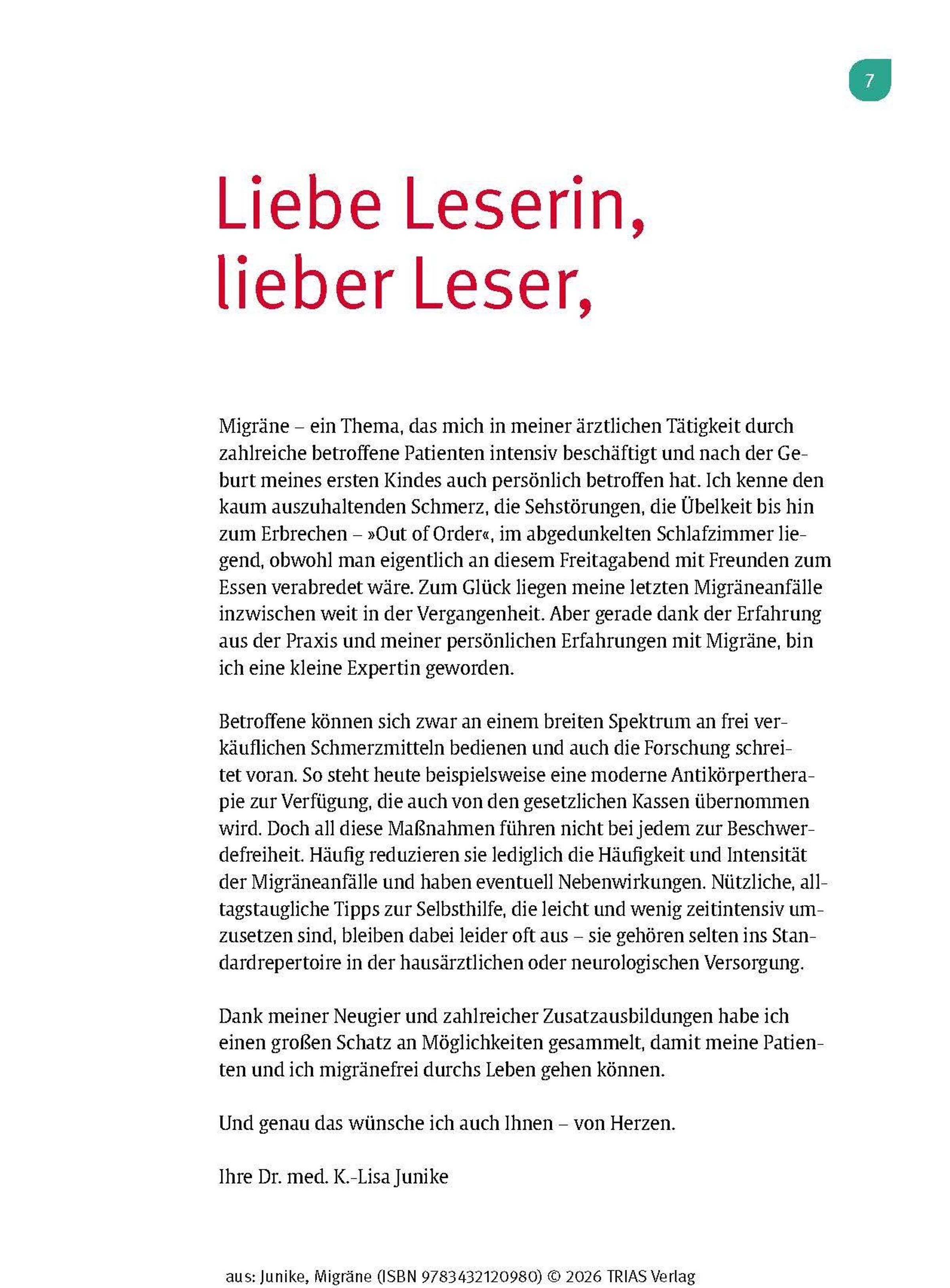 Migräne ist mehr als nur Kopfschmerz - sie lähmt im Alltag, raubt Energie und mindert Ihre Lebensqualität. Schmerzspezialistin und Osteopathin Dr. Kathrin-Lisa Junike erforschte und erarbeitete 20 Jahre lang ganzheitliche Therapien, um Migräne-Patienten besser helfen zu können. Diese langjährigen Erfahrungen fließen nun in dieses Buch.