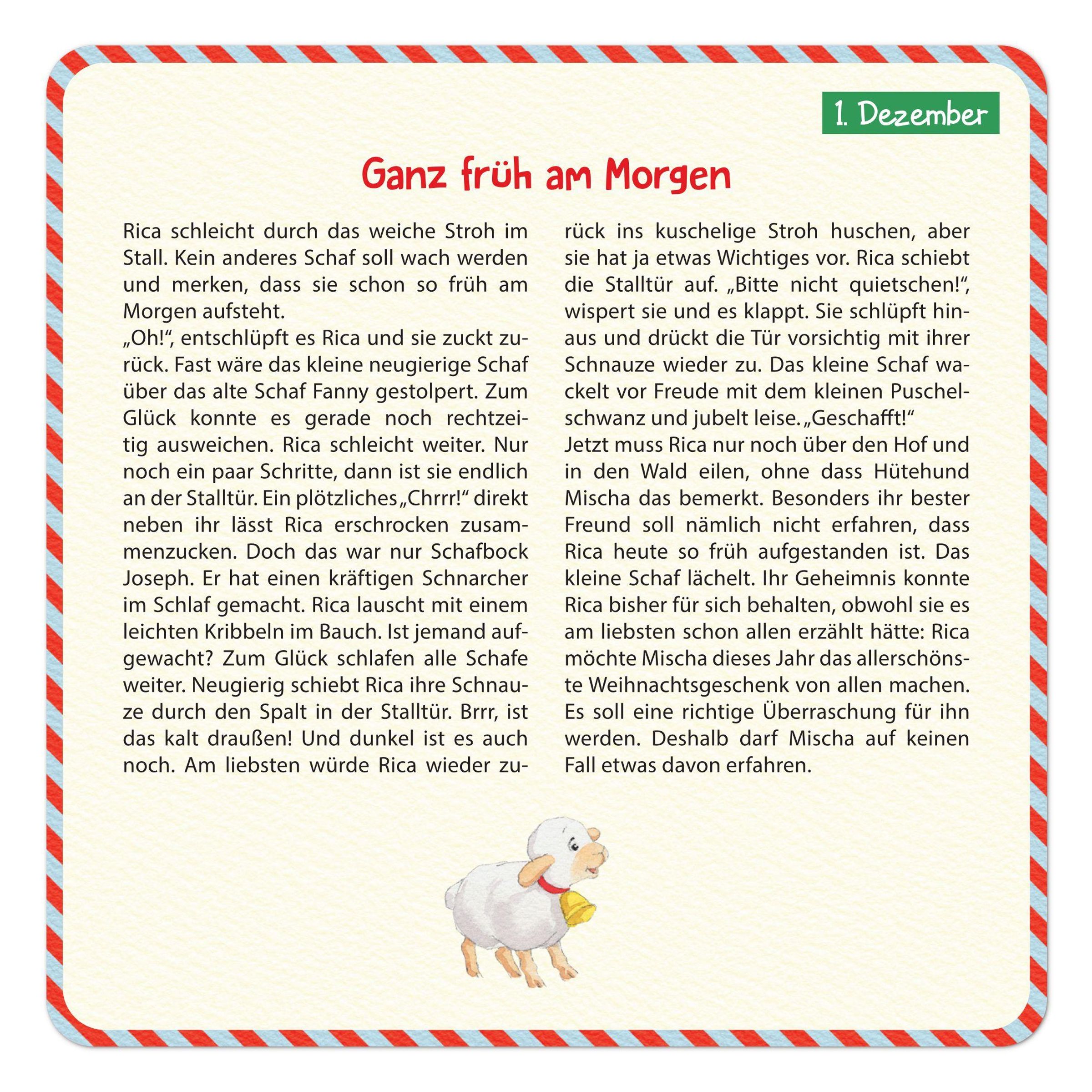 Der Advent kann kommen - mit Rica, dem kleinen neugierigen Schaf, das die Herzen der Kleinsten im Sturm erobert. "Frohe Weihnachten, Rica!" ist ein liebevoll gestalteter Adventskalender, der Vorlesespaß und kreatives Mitspielen vereint. Auf 24 handlichen Vorlesekarten wird eine herzerwärmende Weihnachtsgeschichte in 24 Kapiteln erzählt, die Kinder ab 3 Jahren täglich begleiten.