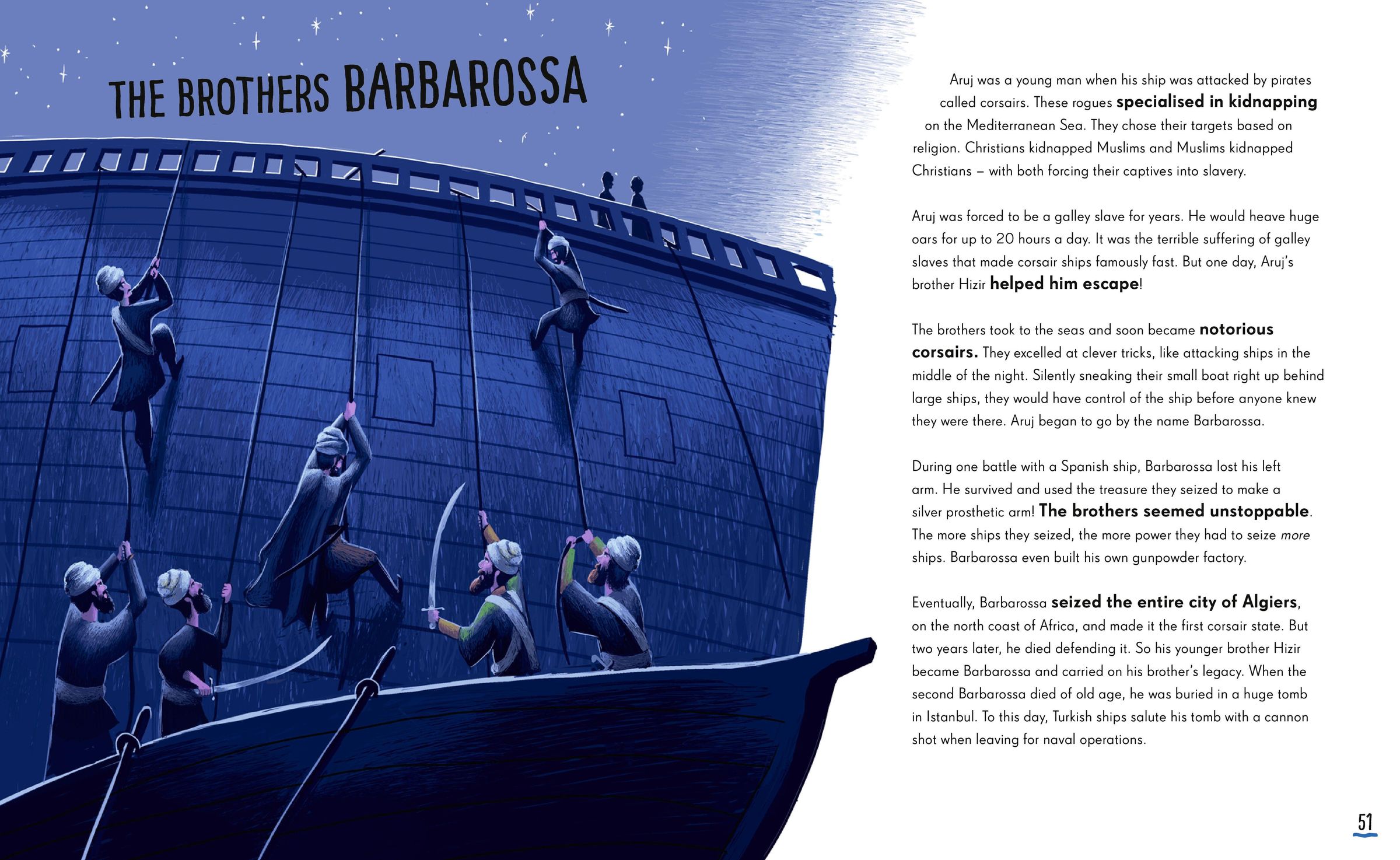 Tales of Pirates includes sagas of famous pirates like Blackbeard, Ching Shih and Francis Drake, as well as stories of buccaneers you might not have heard of, such as Grace O'Malley, who went to sea disguised as a boy and Sayyida al Hurra, a Moroccan queen turned privateer.