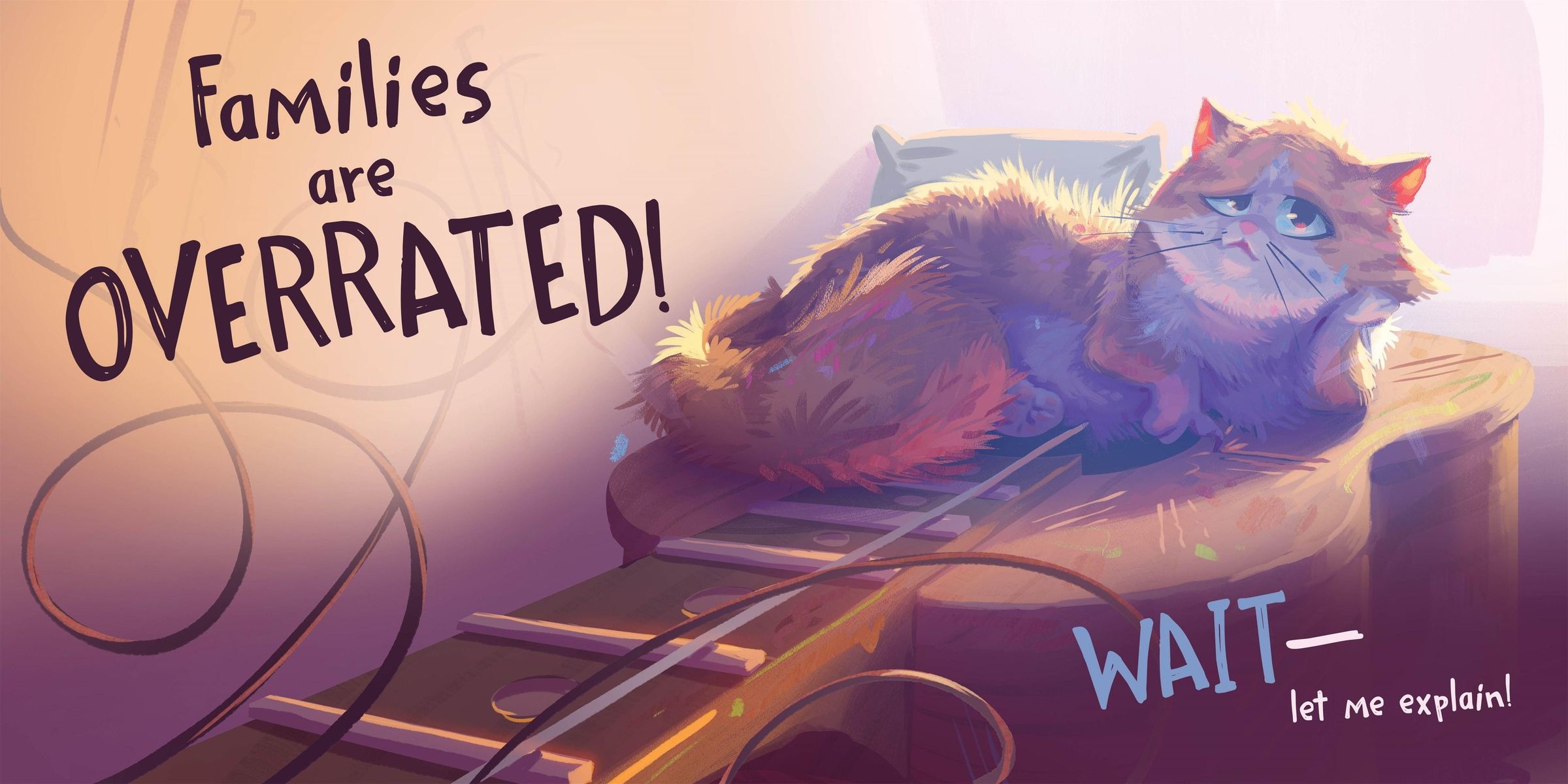 The family cat has a LOT to get off her chest. Life with children can be . . . challenging . Between their loud shrieks, dress-up games, and bath-time nonsense, she can't take any more of these little ones!