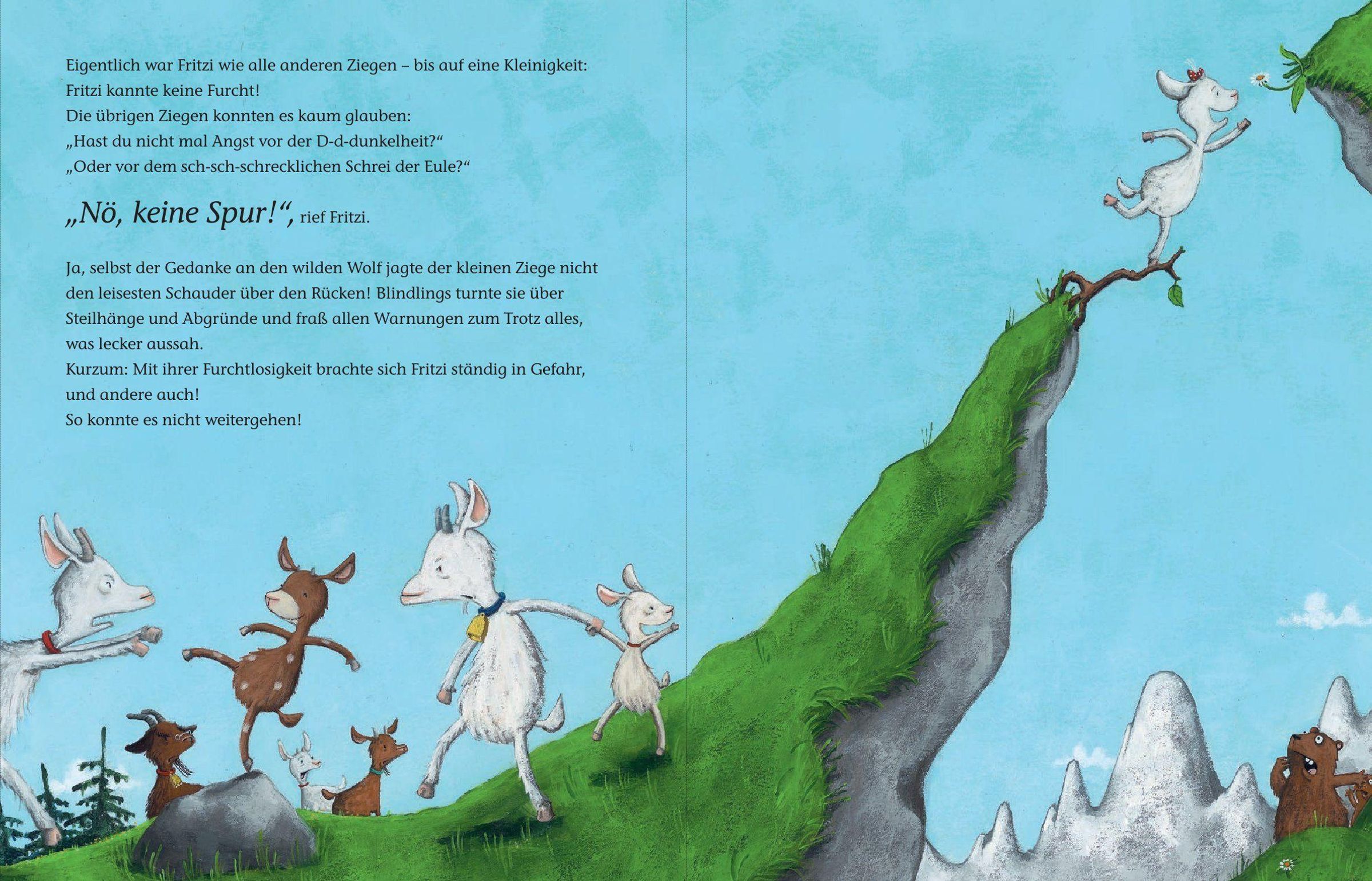 Keine Angst vorm bösen Wolf? Ein Zicklein auf der Suche nach der Furcht Die Ziegen können es nicht fassen: Fritzi hat vor gar nichts Angst! Nicht vor der Dunkelheit oder dem Schrei der Eule! Nicht vor den steilen Klippen oder dem tiefen Abgrund! Ja, nicht einmal vor dem bösen Wolf! Das ist nicht nur nicht normal, sondern außerdem gefährlich! Und zwar für die ganze Herde. Also zieht Fritzi los, um das Fürchten zu lernen ... Und erlebt dabei die größte Überraschung ihres Lebens!