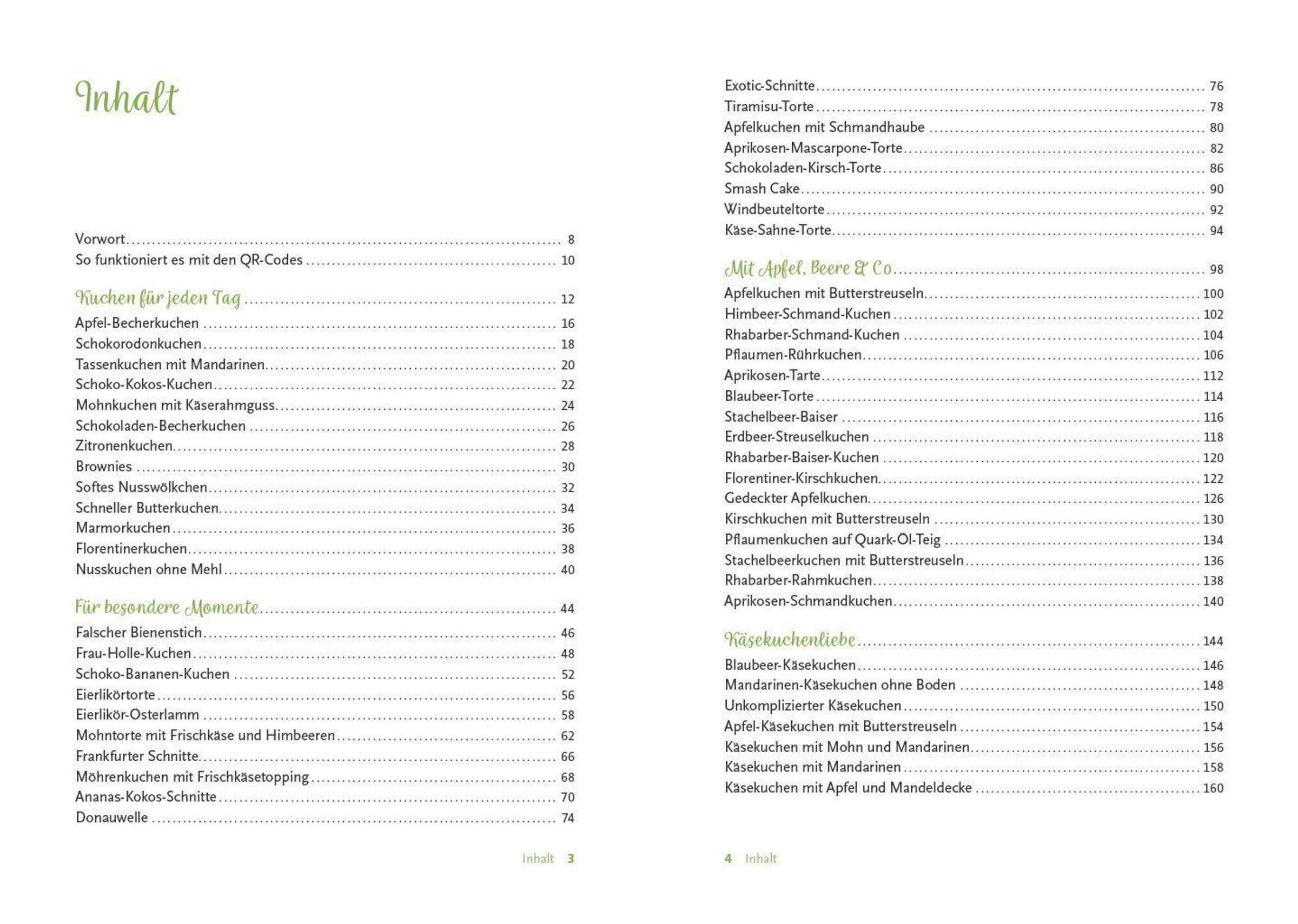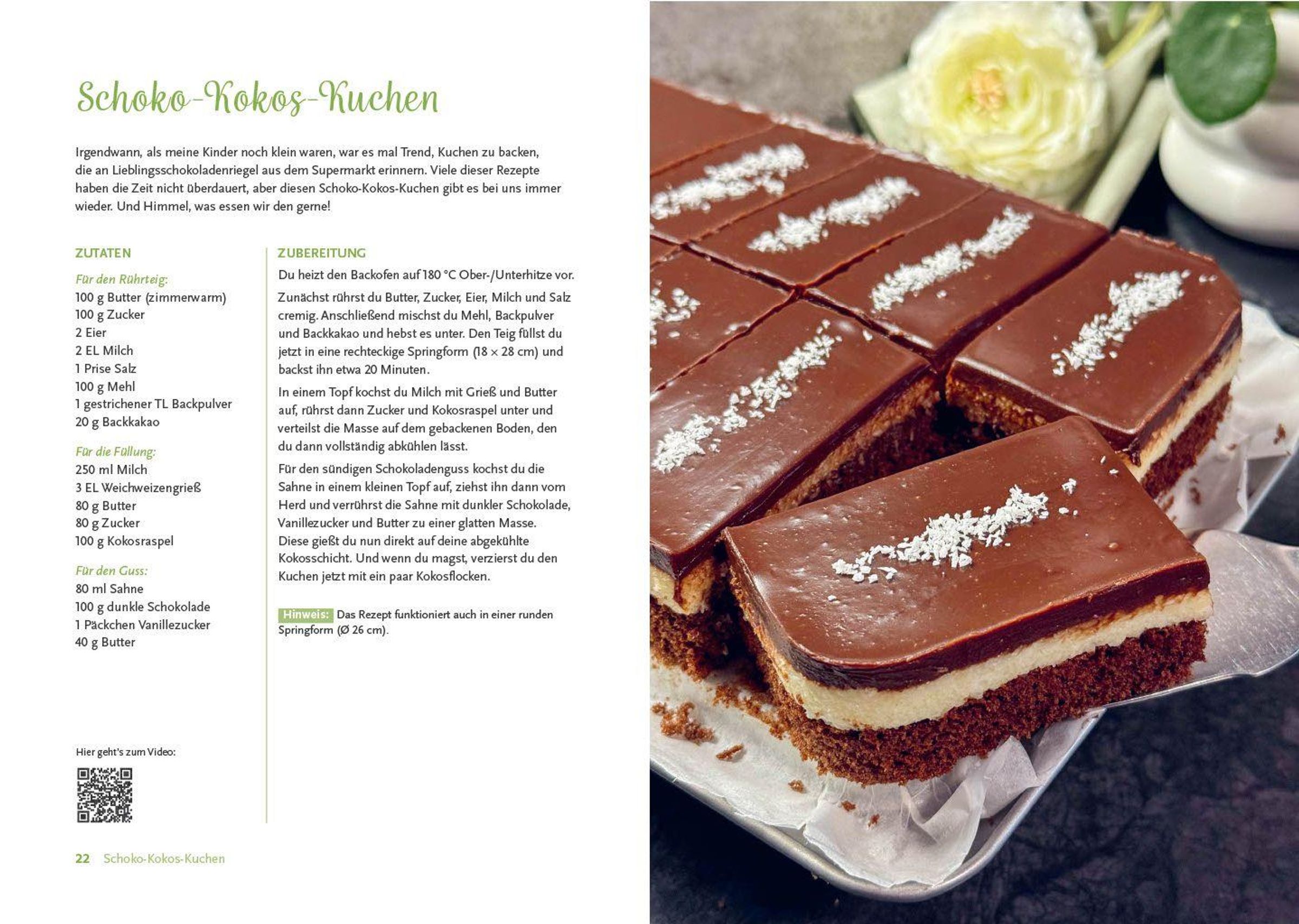Enthalten sind schnelle Ideen wie der Apfel-Becherkuchen oder ein saftiger Schokoladenkuchen, cremige Käsekuchen in vielen Variationen sowie Klassiker wie Butterkuchen, Marmorkuchen oder Donauwelle. Für besondere Anlässe gibt es außerdem Rezepte wie die Windbeutel-Torte, eine Ananas-Kokos-Schnitte, die Frau-Holle-Torte oder den Smash Cake zum ersten Geburtstag. Was dieses Buch besonders macht:
