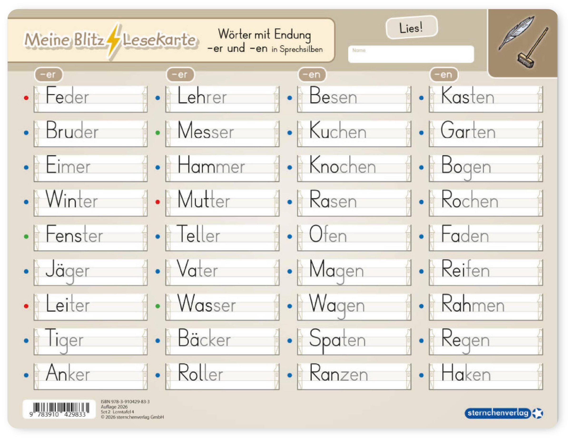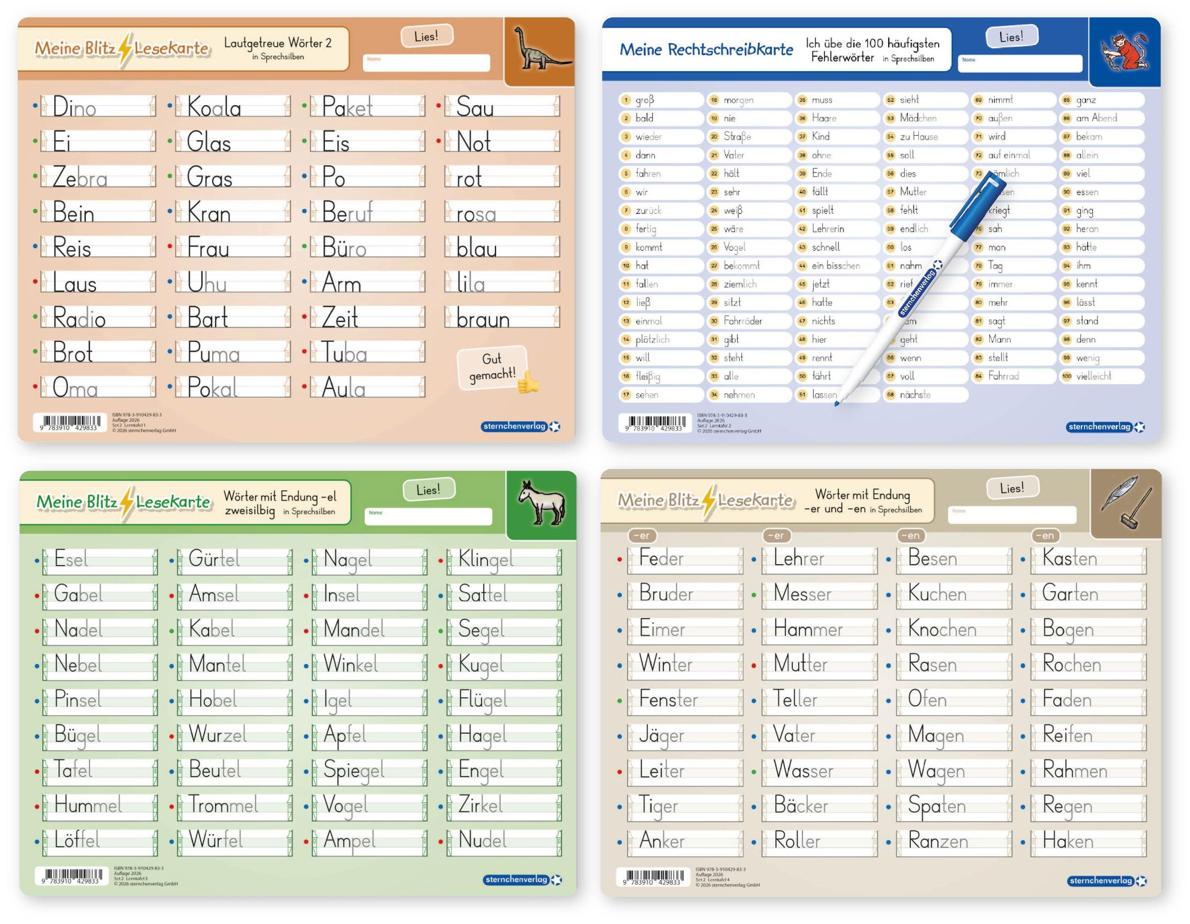 sternchenverlag GmbH: Meine Blitzlesekarten Set 2 zur Leseförderung (4 Lerntafeln mit Stift), Blätter