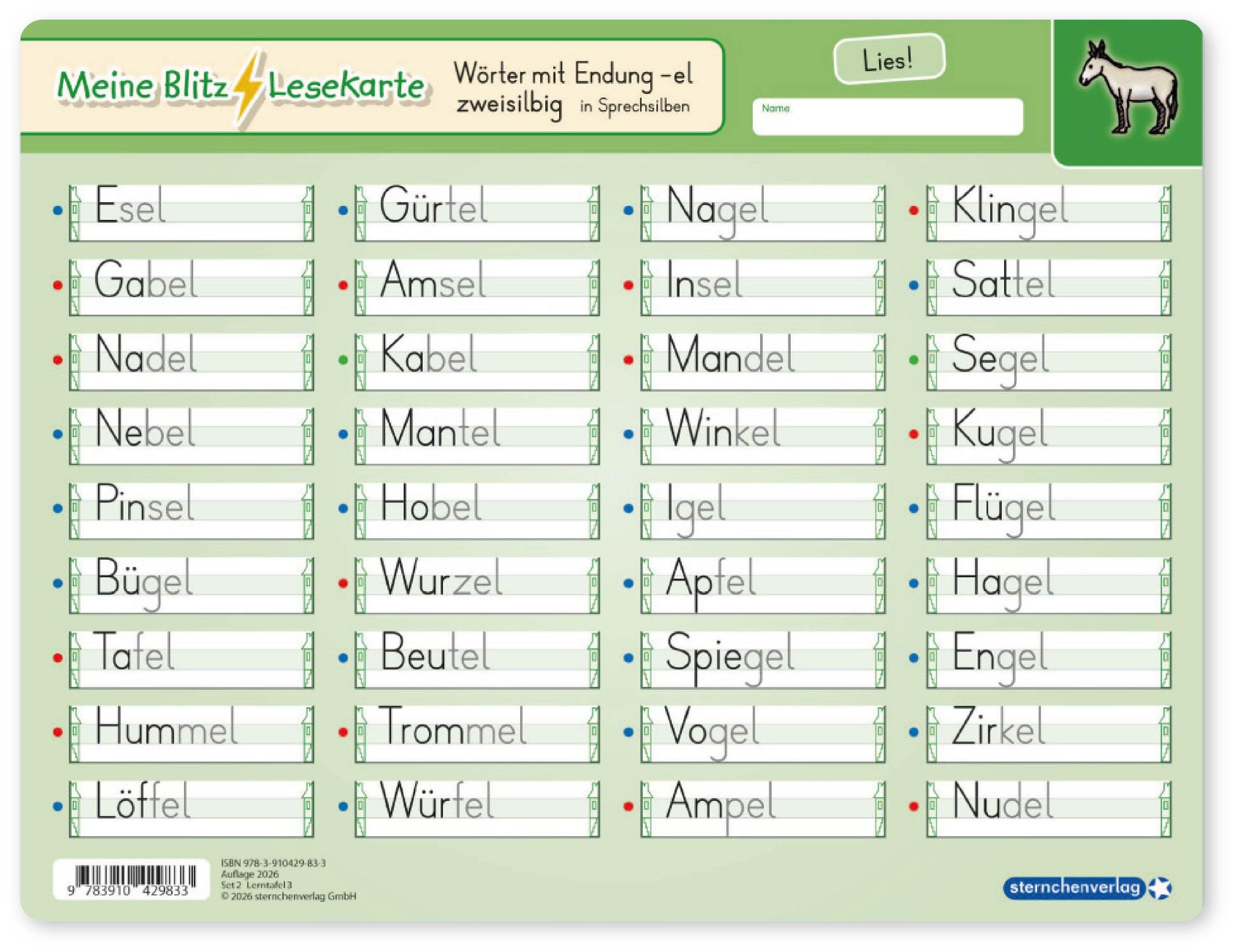 Karte: Wörter mit Endung -el zweisilbig