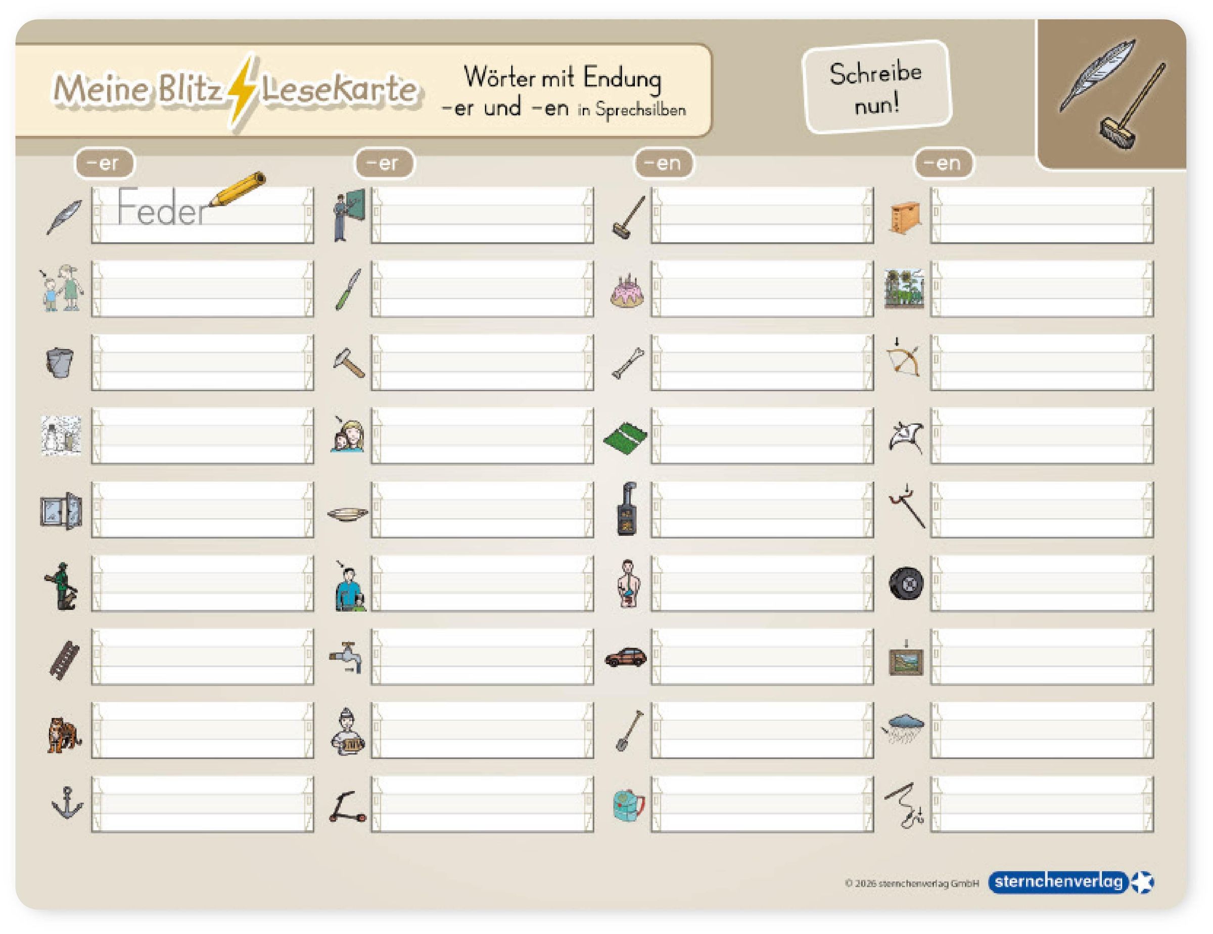 Karte: Wörter mit Endung -er und -en