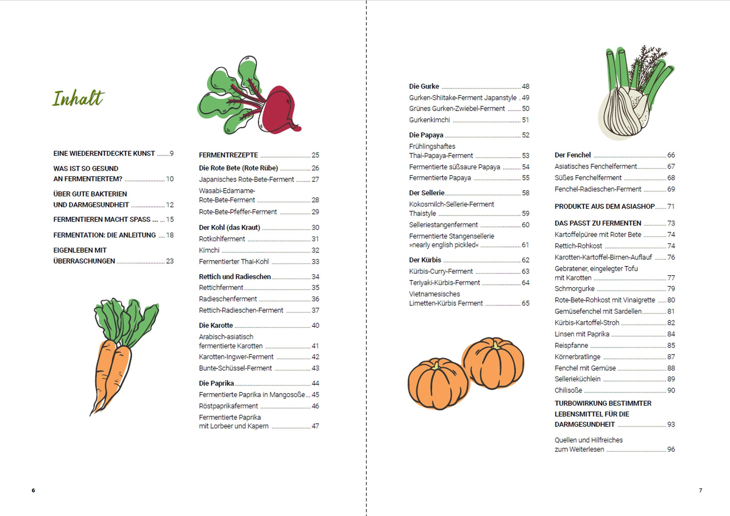 Fermentieren ist eine uralte Technik, seit Tausenden von Jahren werden Lebensmittel "milchsauer vergoren". Dadurch sind sie länger haltbar, bekömmlicher und gesundheitsfördernd. Die Heilkraft von fermentiertem Gemüse ist in vielen Kulturen bekannt, da es für eine gesunde Darmflora sorgt. Fermentierte Lebensmittel stärken unsere Abwehrkräfte und schützen vor vielen Krankheiten. Durch das Fermentieren werden zudem neue Geschmackserlebnisse geschaffen, denn durch kreativen Einsatz von Kräutern, Gewürzen und Zutaten können immer neue Rezepte entstehen. Die Autorin bringt auch Menschen ohne Vorkenntnisse die Einfachheit des Fermentierens näher. Nach einer kompakten allgemeinen Einleitung und Informationen zu den positiven gesundheitlichen Auswirkungen fermentierter Lebensmittel finden sich 30 Rezepte für das Fermentieren einheimischer Gemüseklassiker mit exotischen (asiatischen) Gewürzzugaben.
