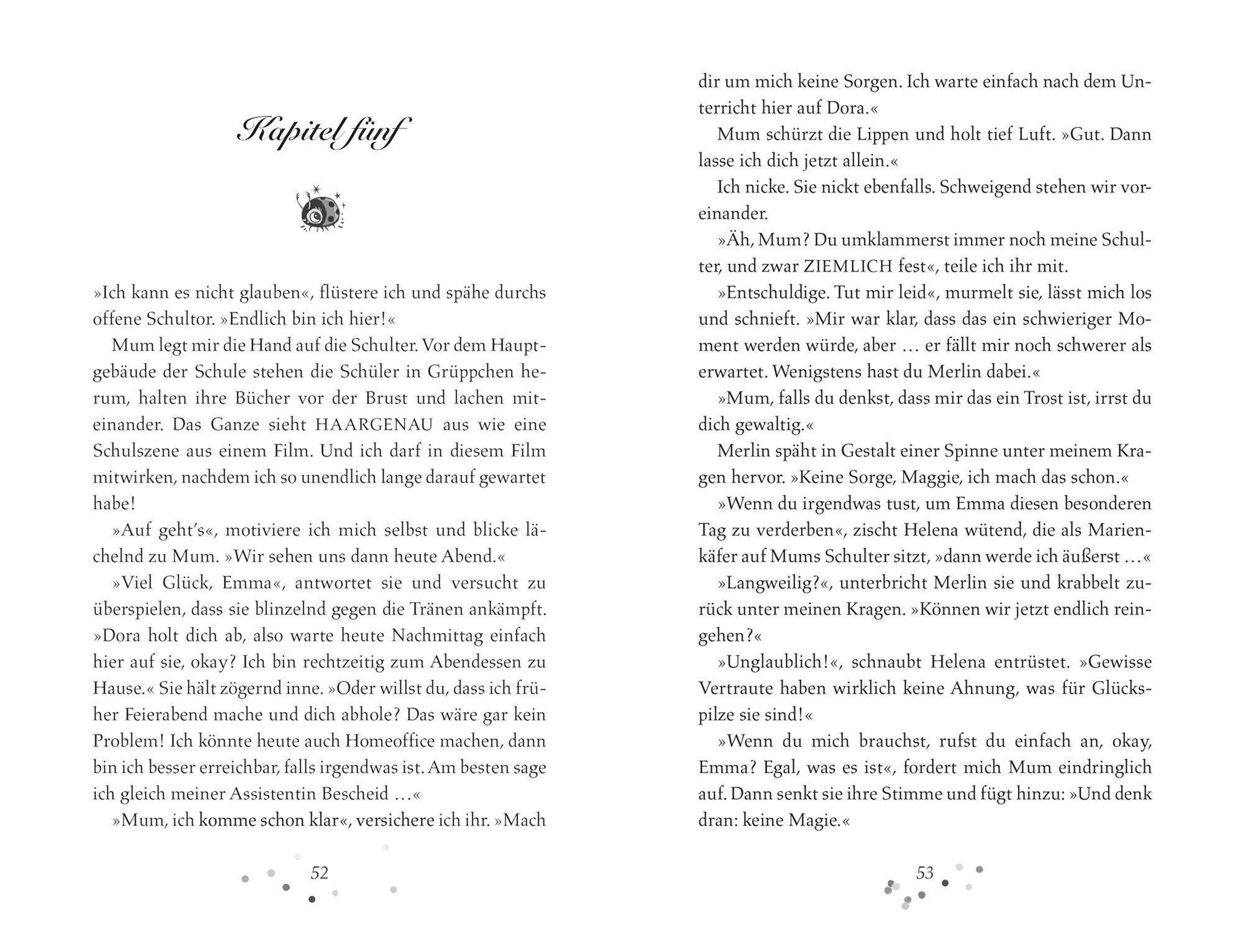 Emma Charming hat dreizehn Jahre lang darauf gewartet, endlich eine Schule besuchen zu dürfen. Als junge Hexe darf sie erst unter normale Menschen, wenn sie ihre magischen Kräfte völlig unter Kontrolle hat. Das hat sie natürlich! Hofft Emma jedenfalls. Hoch und heilig verspricht sie, in der Schule auf jegliche Magie zu verzichten. Doch schon am ersten Tag geht alles schief - so wird sie nie Freunde finden! Und wenn sie doch ein kleines bisschen nachhilft? Was mit einer >>Verbesserung<< des eigenen Tanztalents ganz harmlos beginnt, stürzt Emma schnell von einem magischen Fettnäpfchen ins nächste. Am Ende wird sie die Drachen, die sie rief, buchstäblich nicht wieder los ... Kann Emma das Chaos noch aufhalten, ohne sich selbst zu verraten?