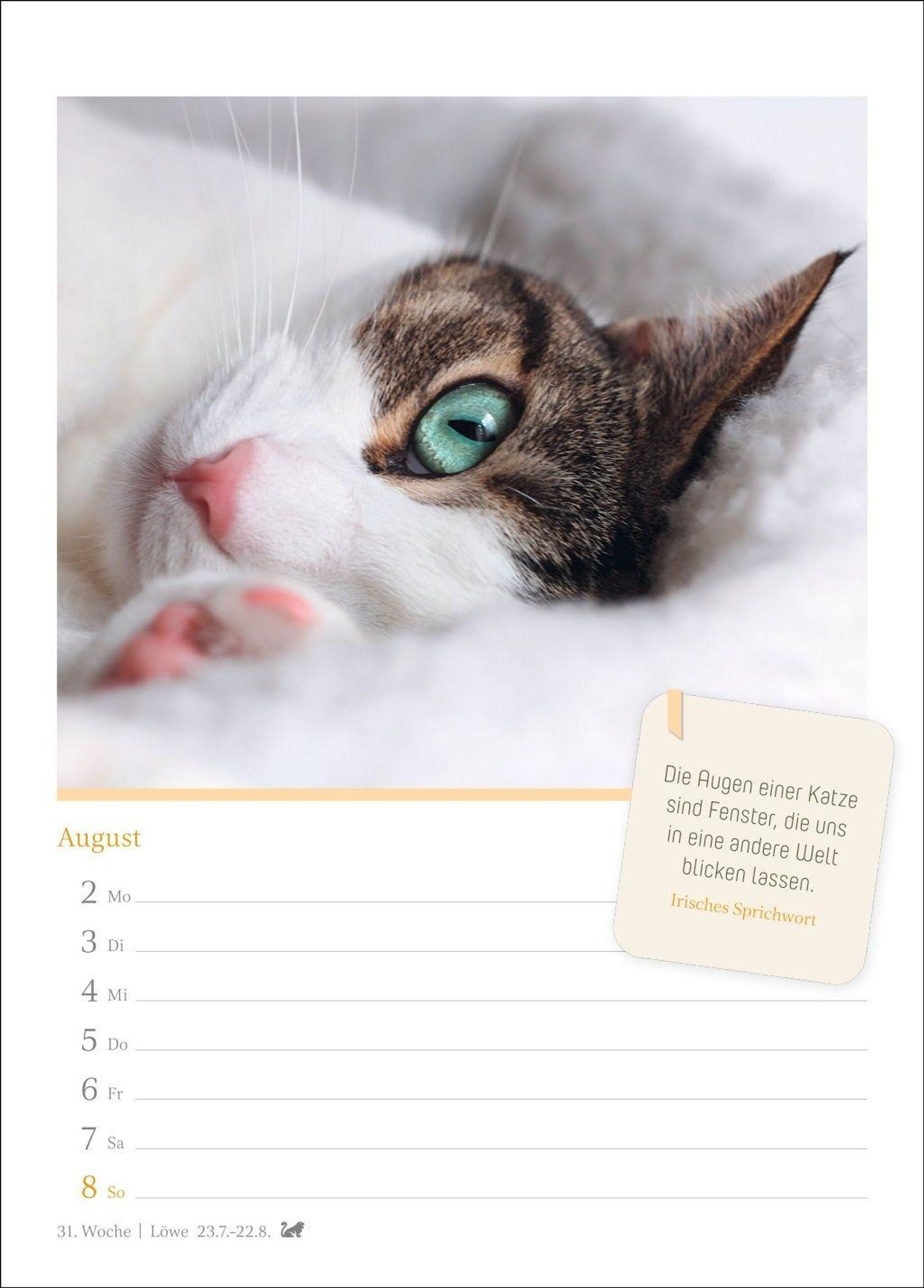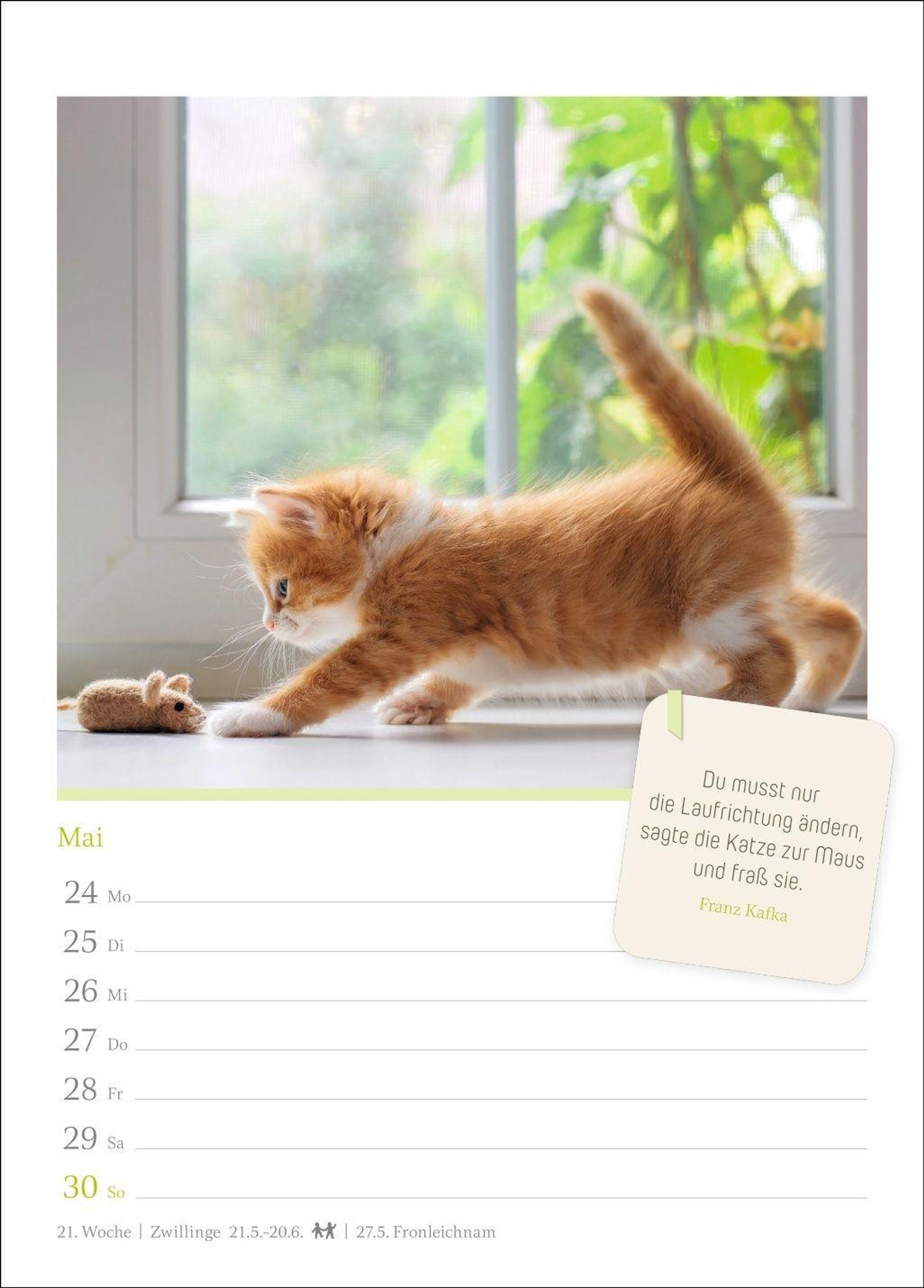 - Jede Woche eine süße Katze in dem kleinen Fotokalender. Passende Zitate und niedliche Fotos machen diesen Wandkalender zum echten Blickfang!