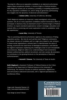Why do people run for office with opposition parties in electoral authoritarian regimes, where the risks of running are high, and the chances of victory are bleak? In Activist Origins of Political Ambition, Keith Weghorst offers a theory that candidacy decisions are set in motion in early life events and that civic activism experiences and careers in civil society organizations funnel aspirants towards opposition candidacy in electoral authoritarian regimes. The book also adapts existing explanations of candidacy decisions derived from leading democracies that can be applied to electoral authoritarian contexts. The mixed-methods research design features an in-depth study of Tanzania using original survey data, sequence methods, archival research, and qualitative data combined with an analysis of legislators across authoritarian and democratic regimes in Africa. A first-of-its kind study, the book's account of the origins of candidacy motivations offers contributions to its study in autocracies, as well as in leading democracies and the United States.