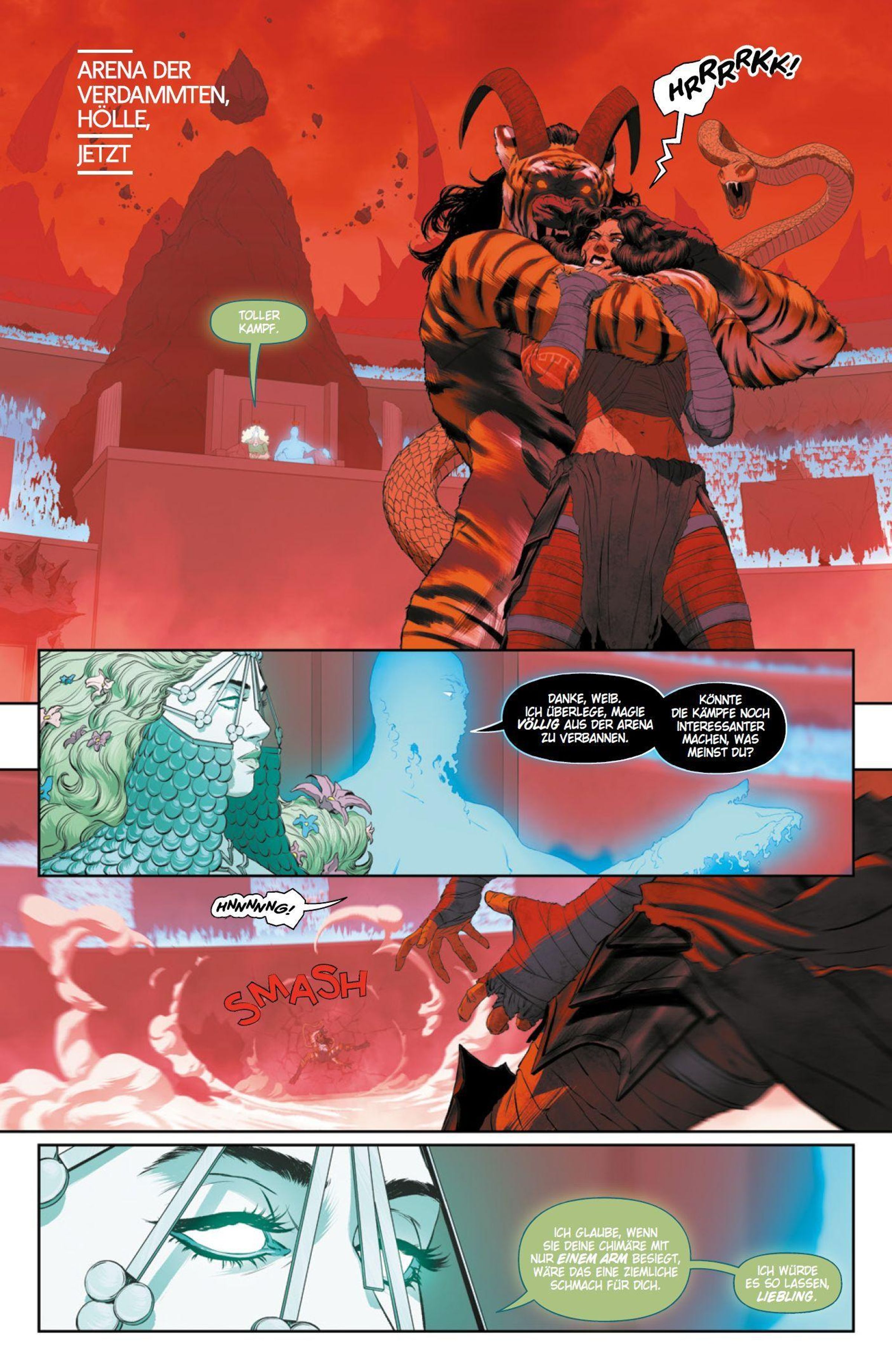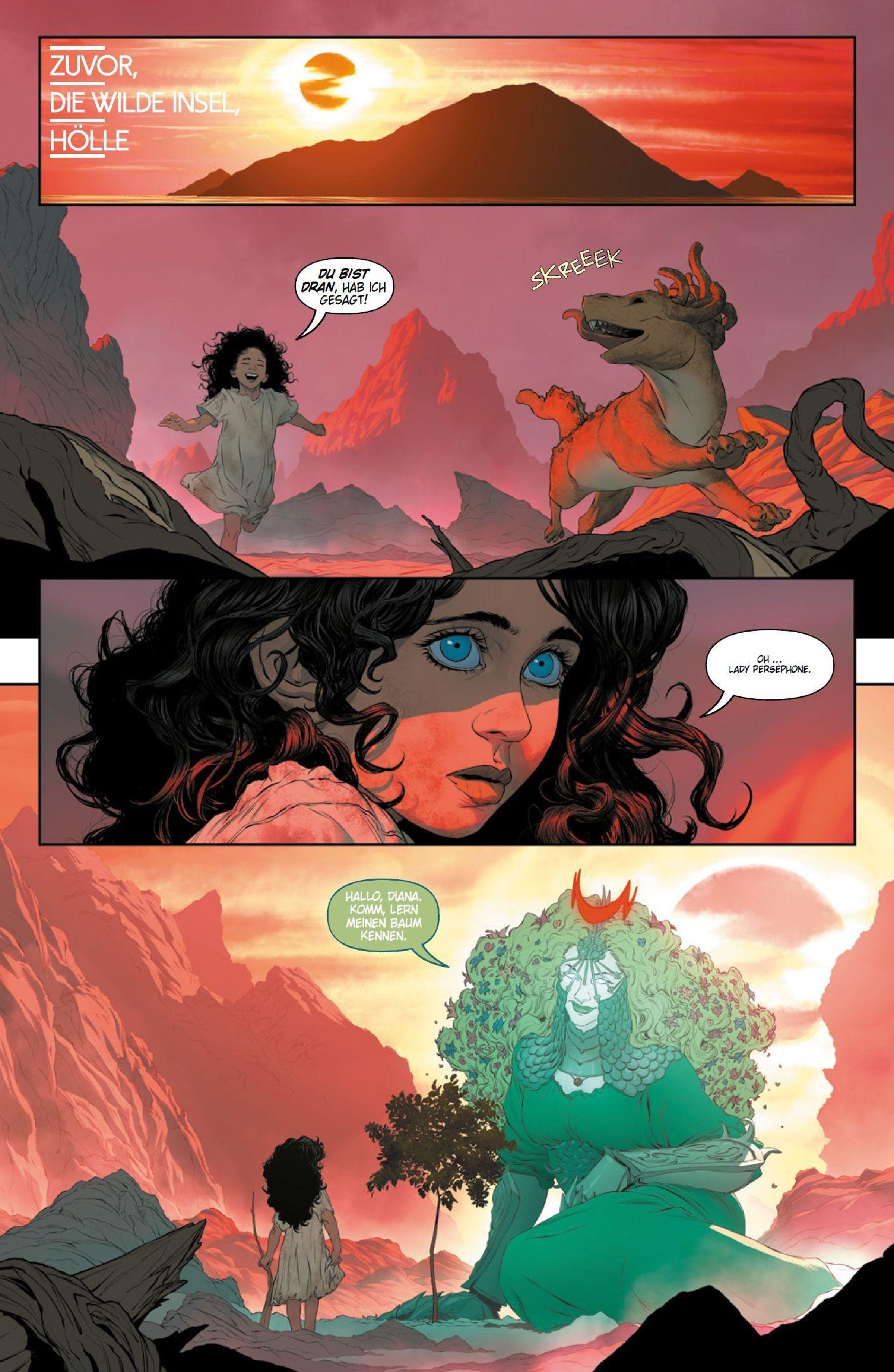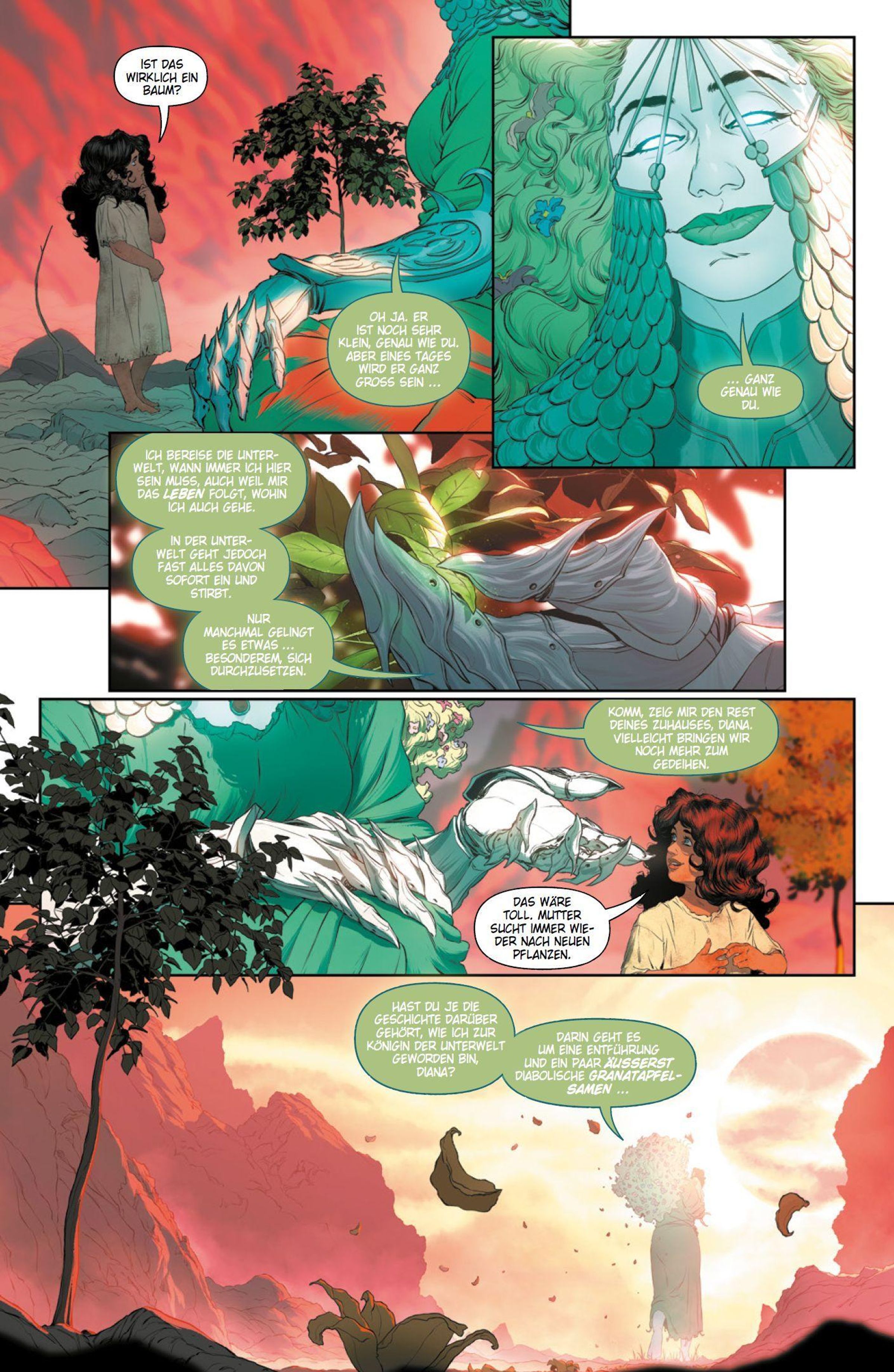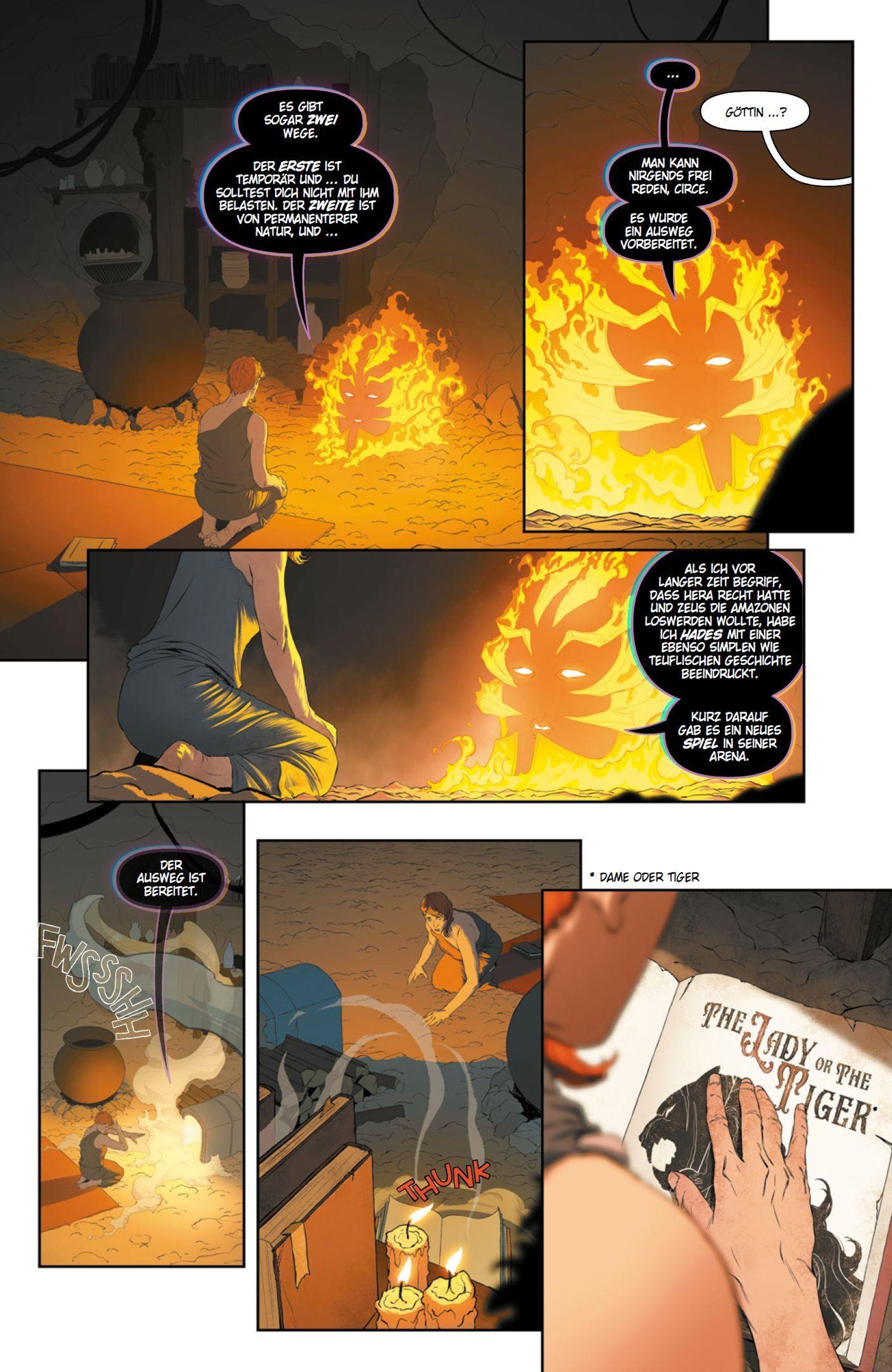 AUS DER ARENA INS LABYRINTH Um ihre Hexenmutter Circe aus der Gewalt von Hades, dem Gott der Unterwelt zu befreien, muss Wonder Woman in dessen Arena antreten! In der Welt der Sterblichen bekommt es die furchtlose Heldin aus der Hölle außerdem mit der gefährlichen Dr. Poison zu tun, die Unmengen kleiner tödlicher Roboterspinnen auf die Stadt loslässt!