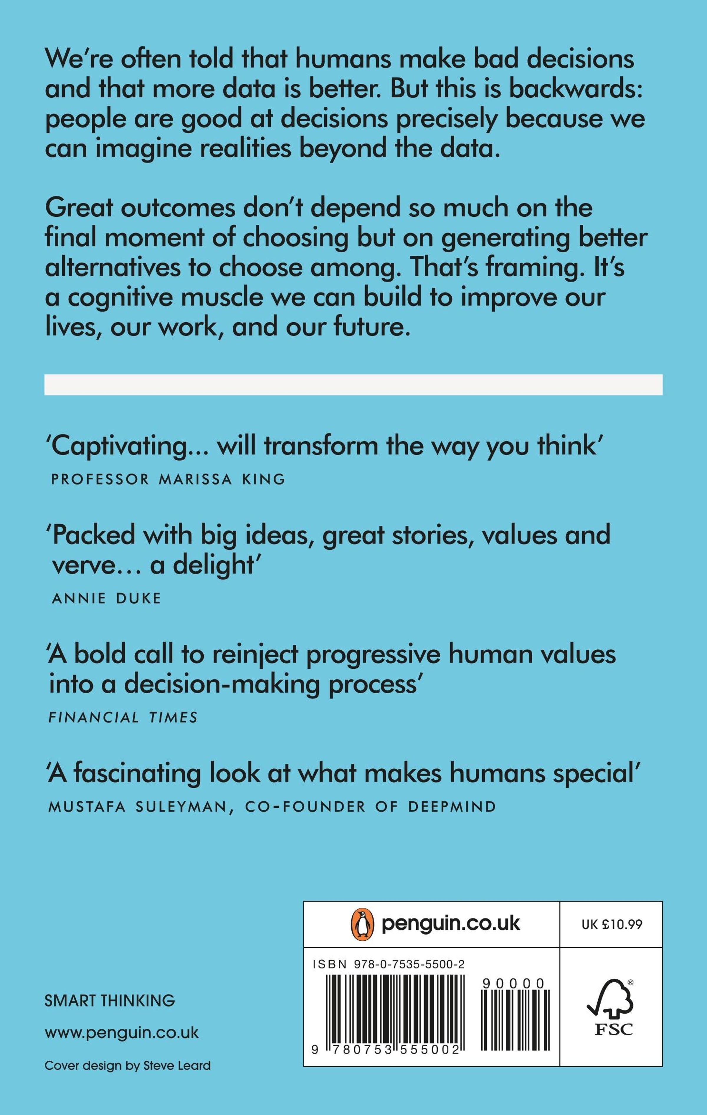 A Financial Times and Economist Book of the Year'Wonderfully stimulating... will teach you to see around corners' - TIM HARFORD'A paean to cognitive agility and the elasticity of the imagination' - ECONOMIST'Captivating... will transform the way you think' MARISSA KING, PROFESSOR AT YALE SCHOOL OF MANAGEMENTThe power of mental models to make better decisionsWe're often told that humans make bad decisions and that more data is better. But this is backwards: people are good at decisions precisely because we use mental models and can envision new realities outside of data. Great outcomes don't depend so much on the final moment of choosing but on generating better alternatives to choose between. That's framing. It's a cognitive muscle we can strengthen to improve our lives, work and future -- to meet this historical moment. Framers shows how.